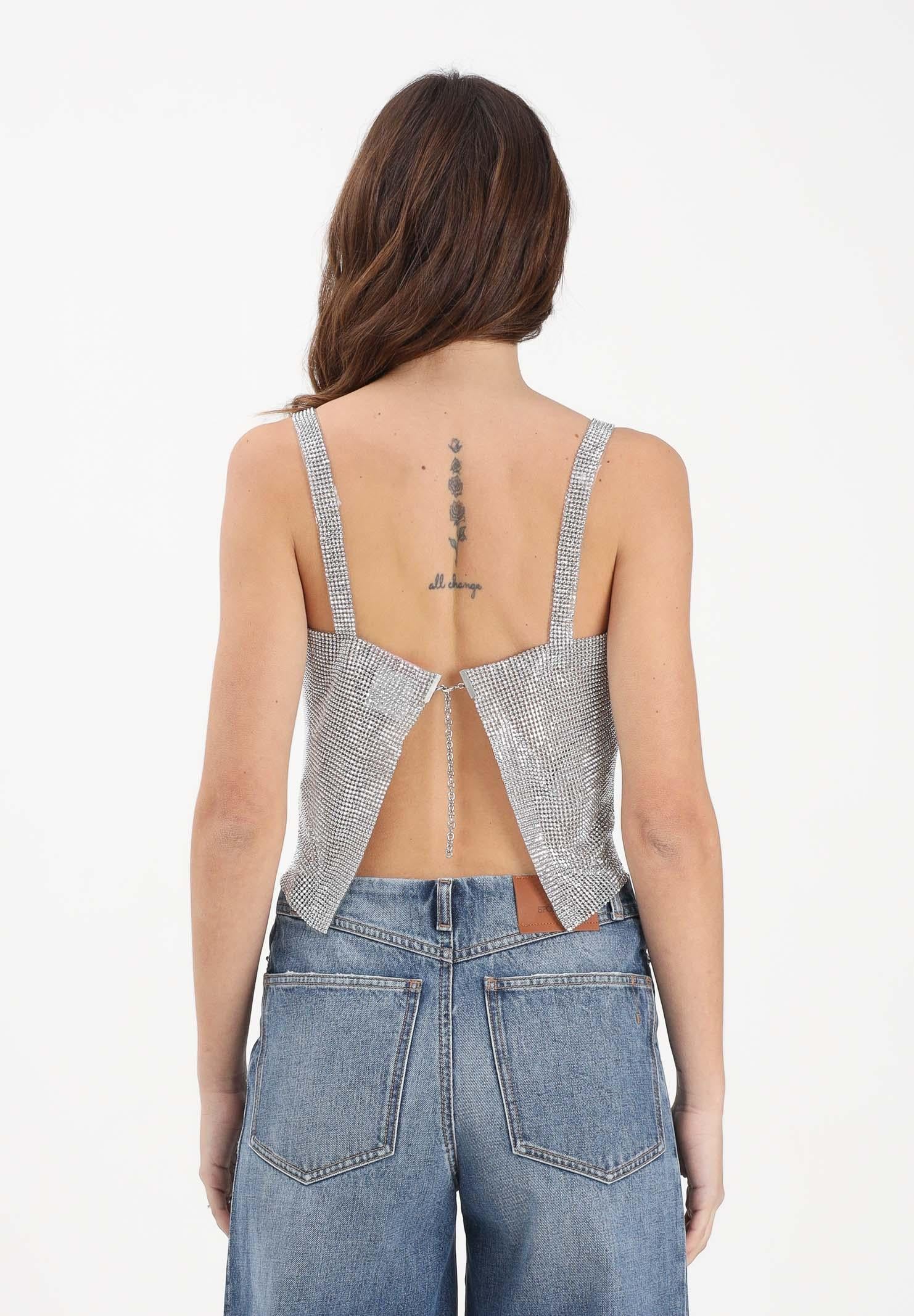 Elegantes silbernes Top für Damen, normale Passform, Frühjahr/Sommer A0121ARG62PAR
