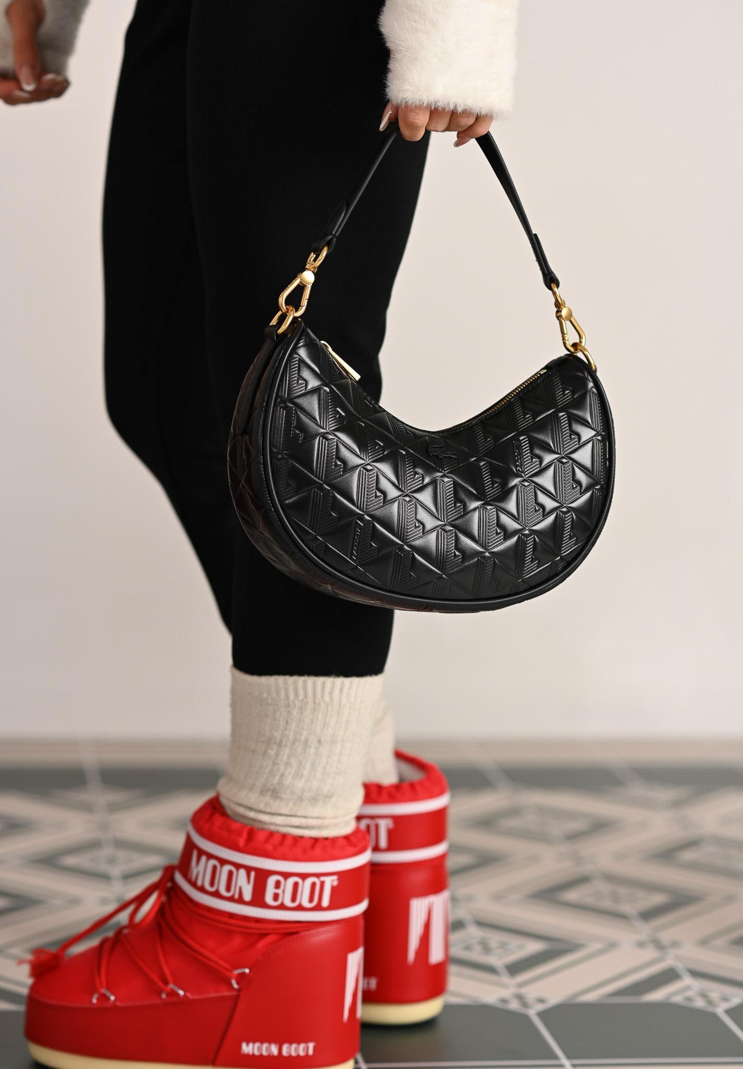 LACOSTE Maheki – Schultertasche aus geprägtem Leder für Damen in Schwarz