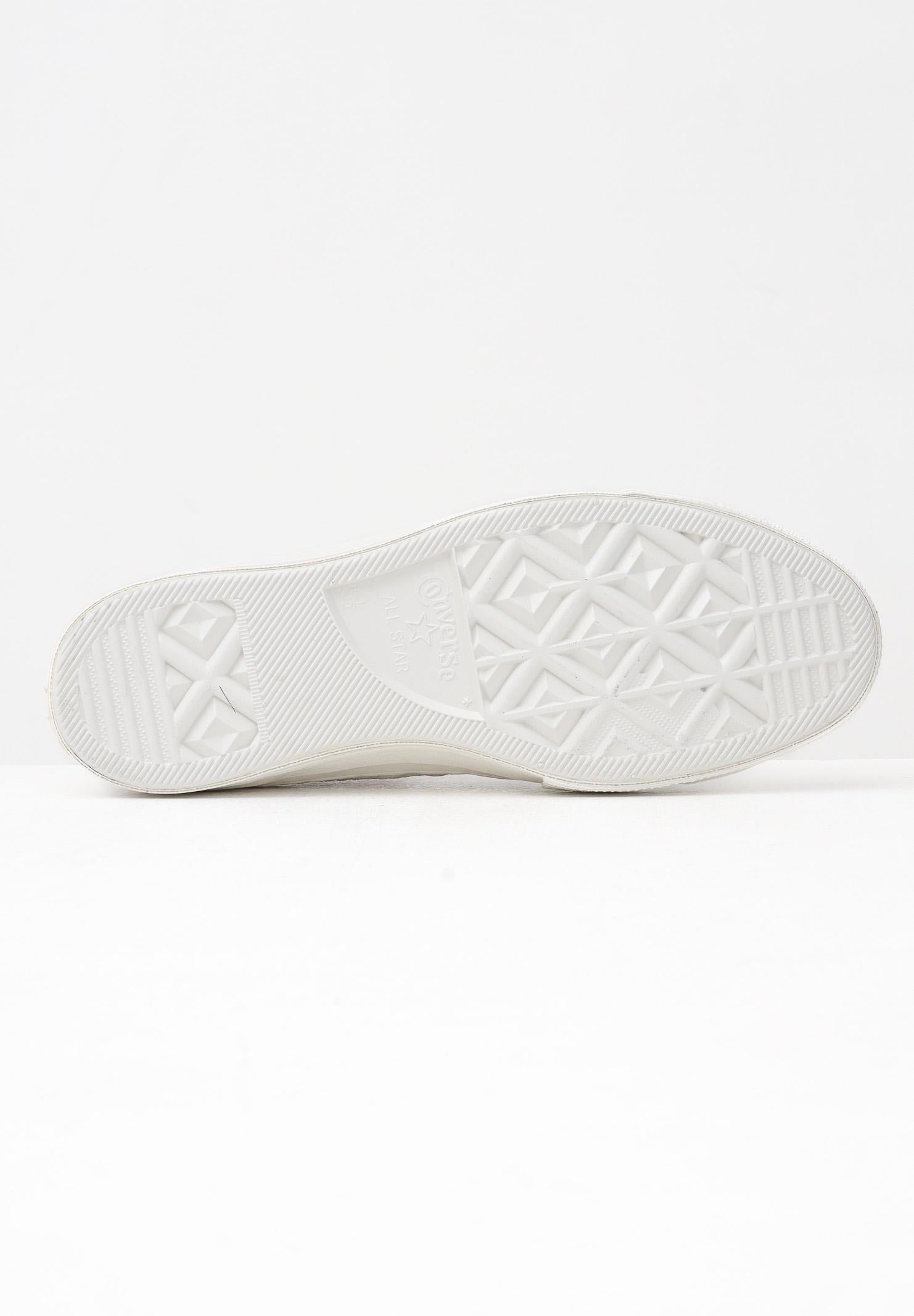 Cremefarbene Sneaker „Chuck 70 Crocheted Satin“ von CONVERSE für Damen. Egal, ob Sie zum Altar gehen oder durch die Straßen der Stadt schreiten, mit diesem High-Top-Spitzendesign werden Sie im Mittelpunkt der Aufmerksamkeit stehen. Frühlings- und Sommersaison.
