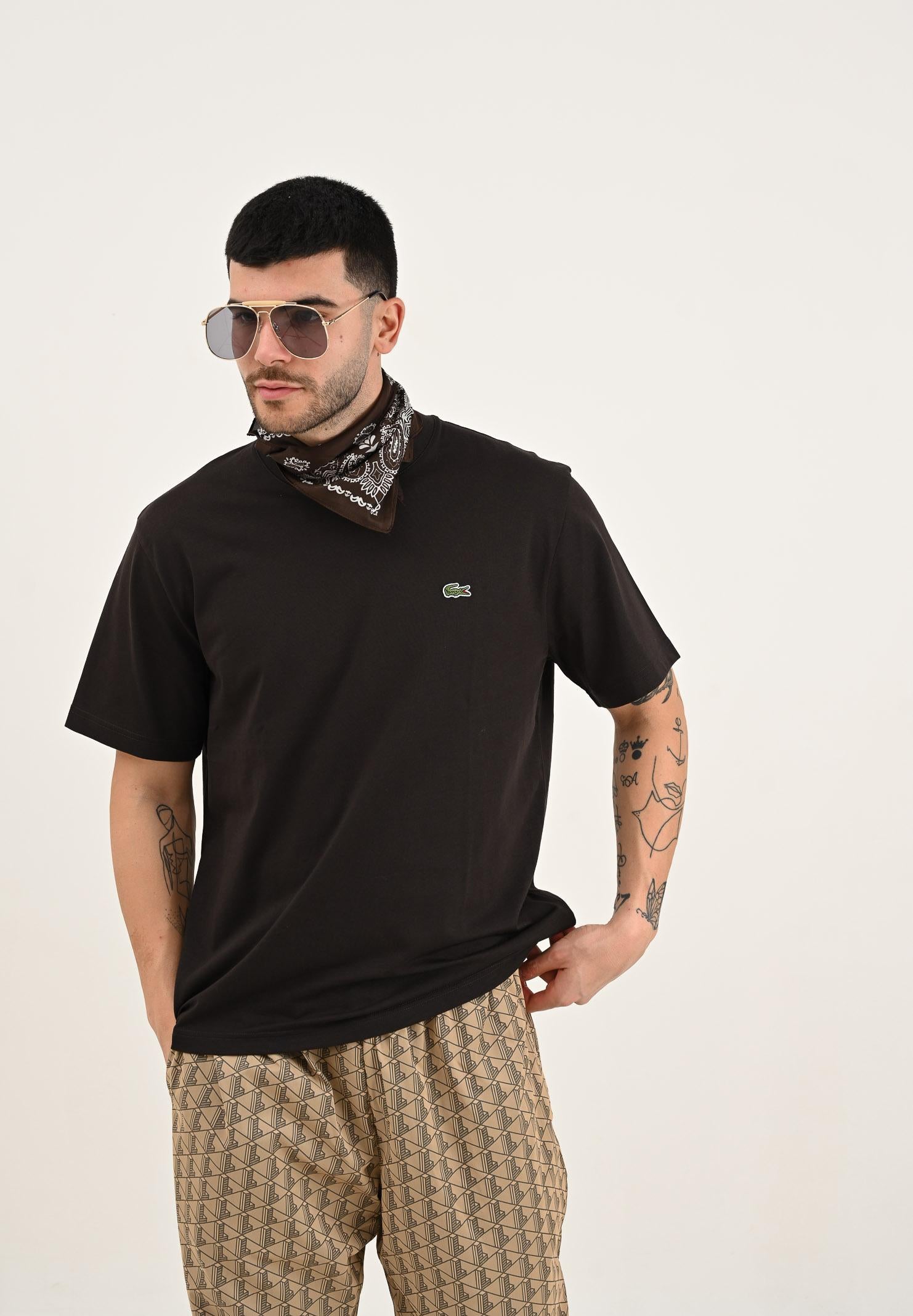 LACOSTE Braunes Kurzarm-T-Shirt für Damen und Herren