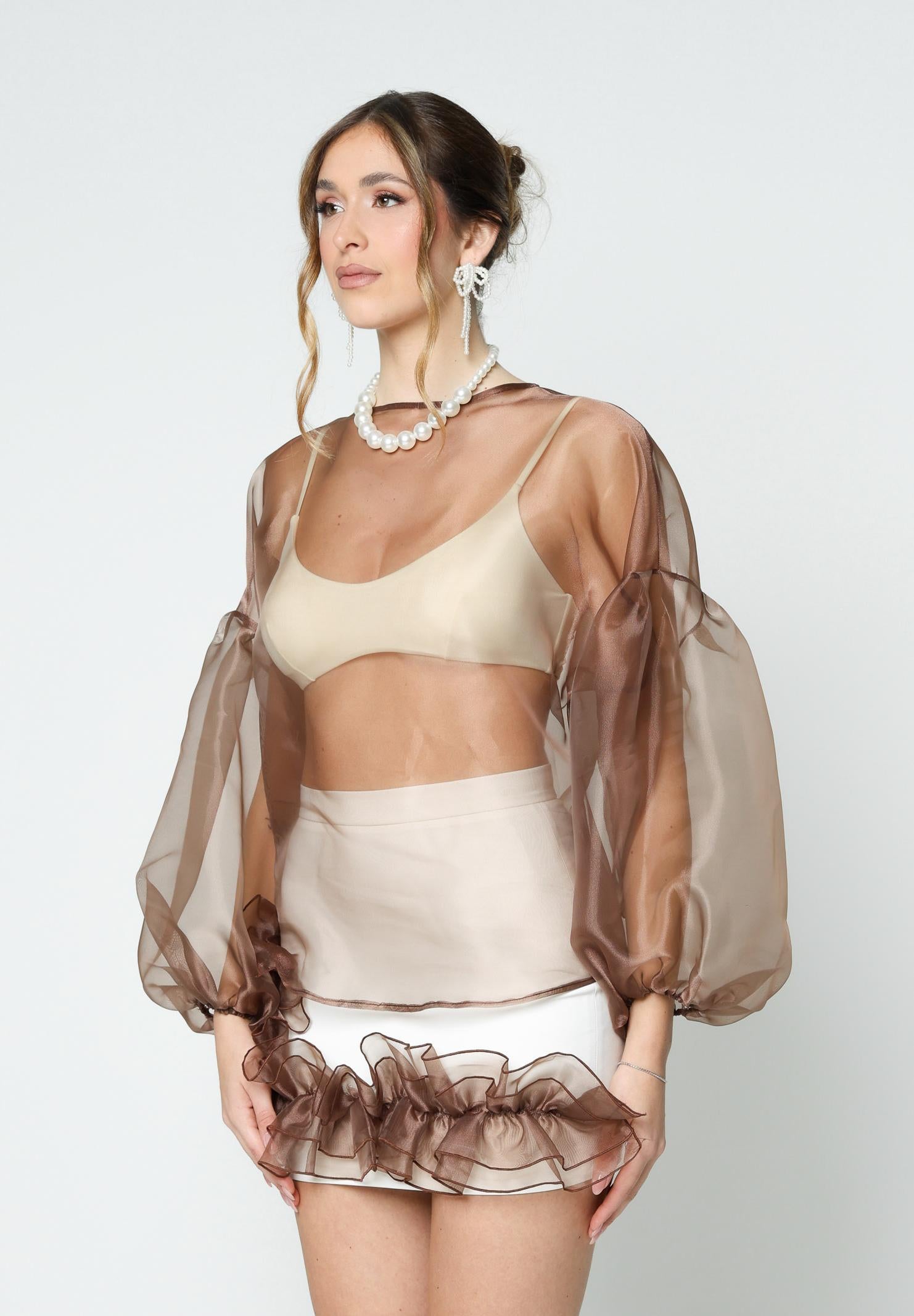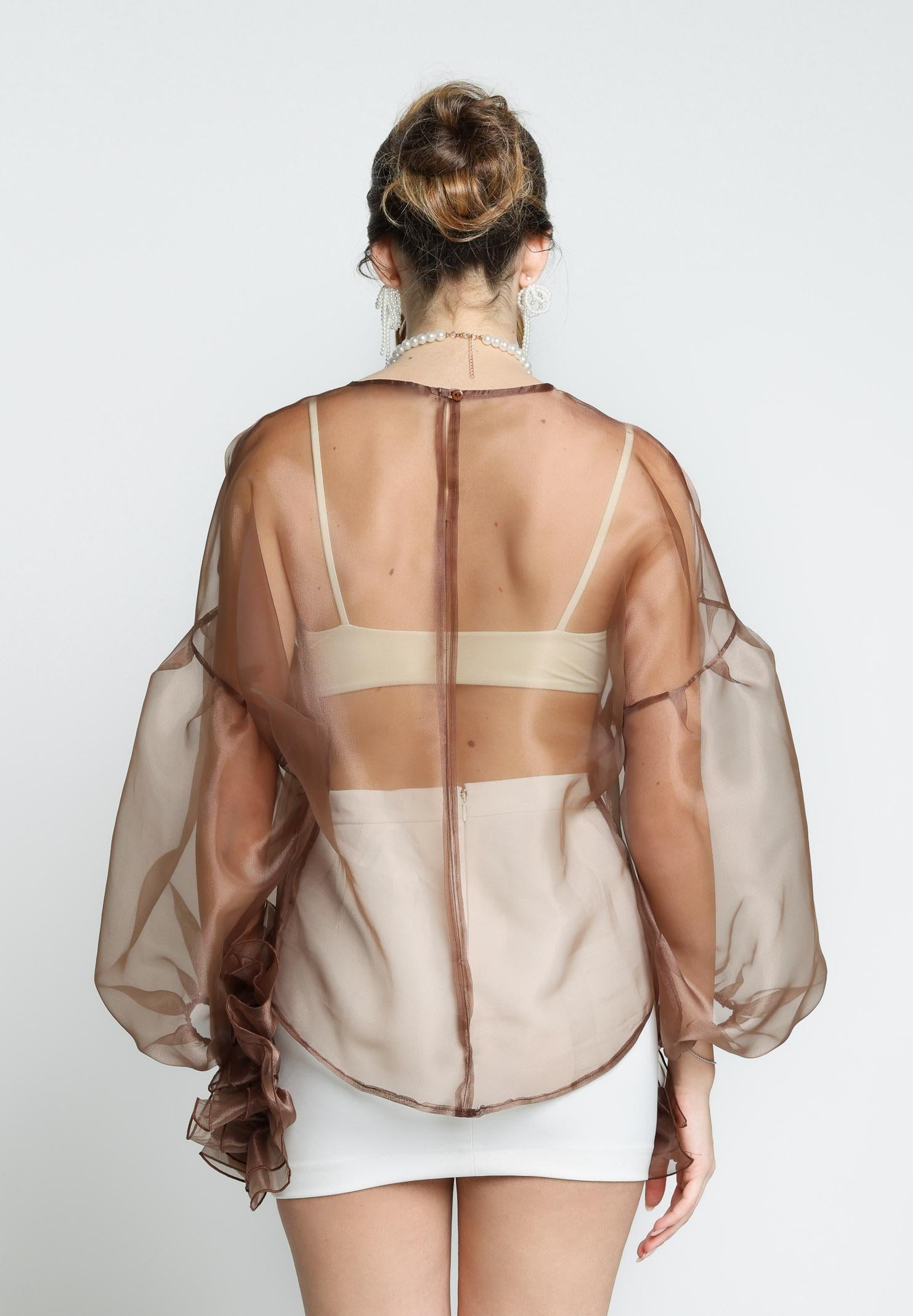Braune Bluse Damen Regular Fit Frühling Sommer PV25015BROWN