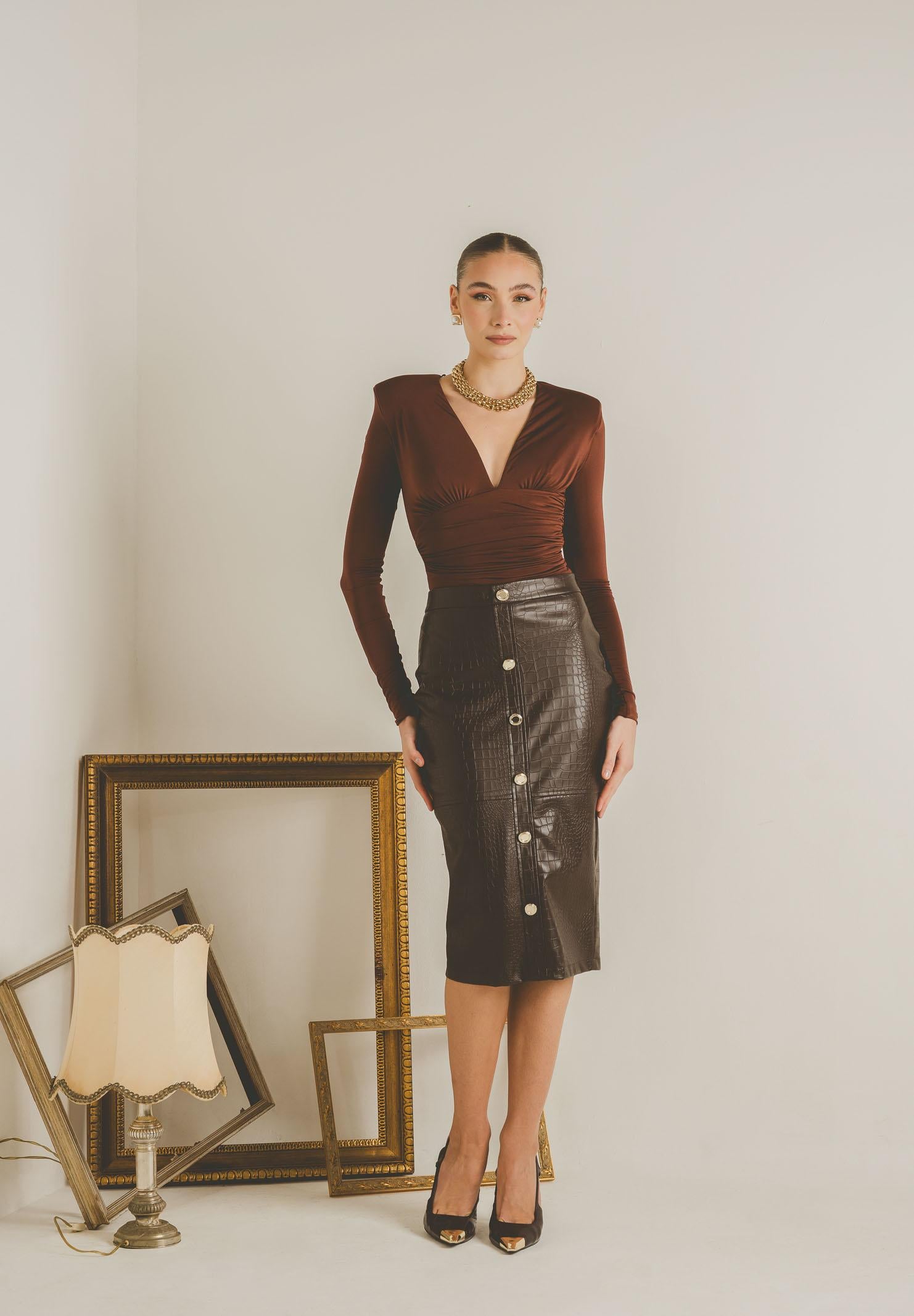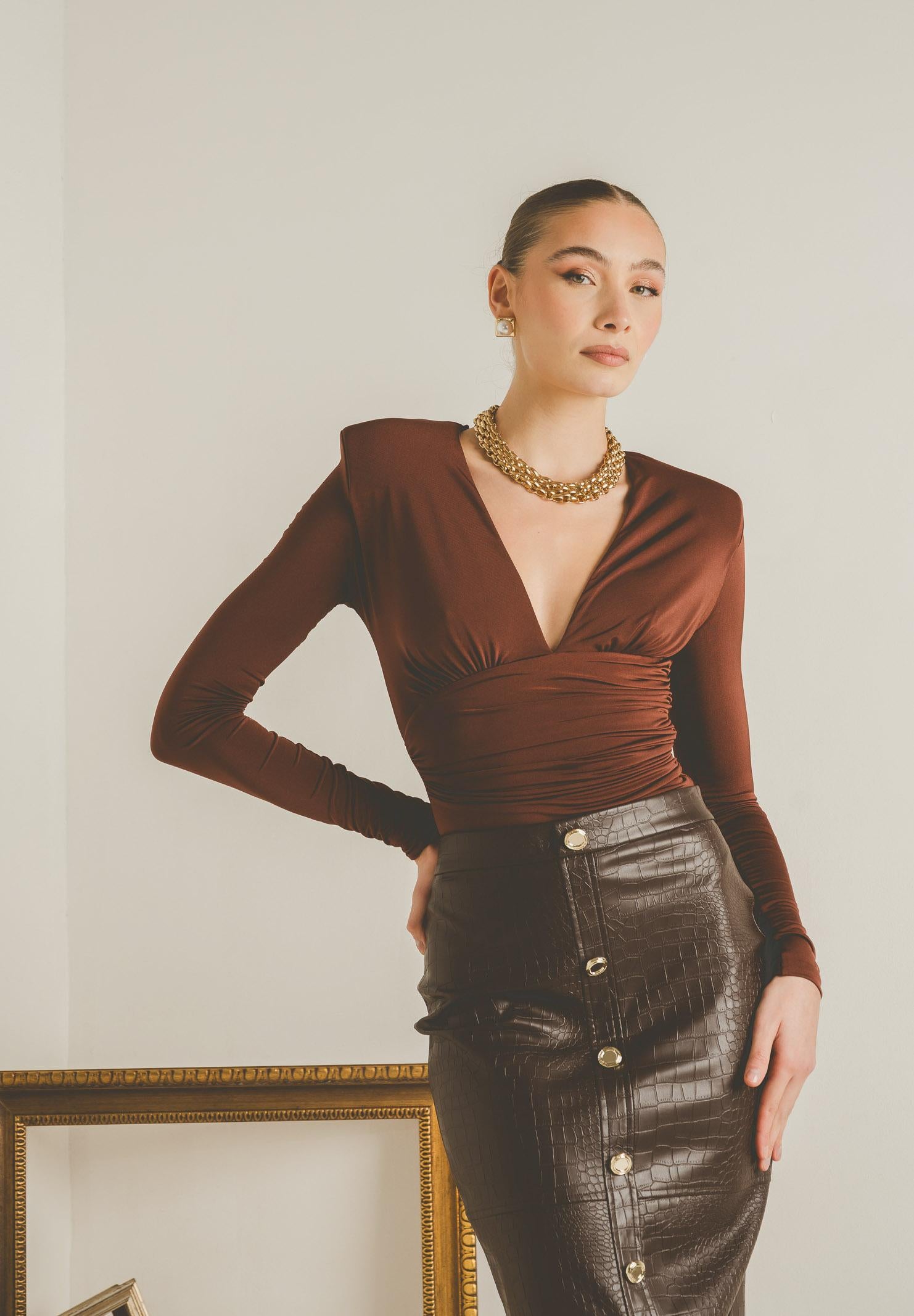Eleganter, brauner Langarmbody für Damen, normale Passform, Herbst/Winter PV2611MA