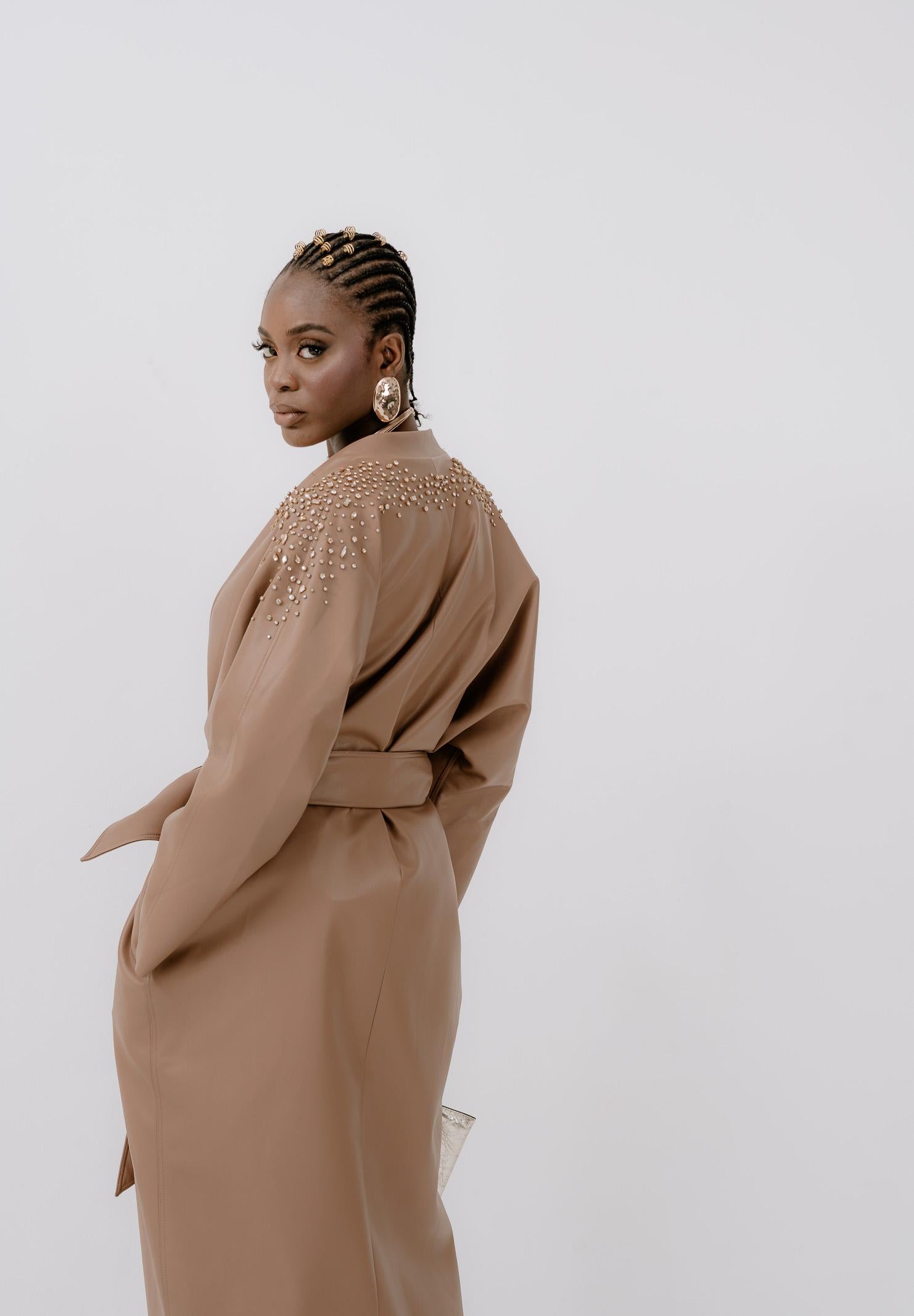 ALMA SANCHEZ Women's Camel Faux Leather Sabelle Trench Coat