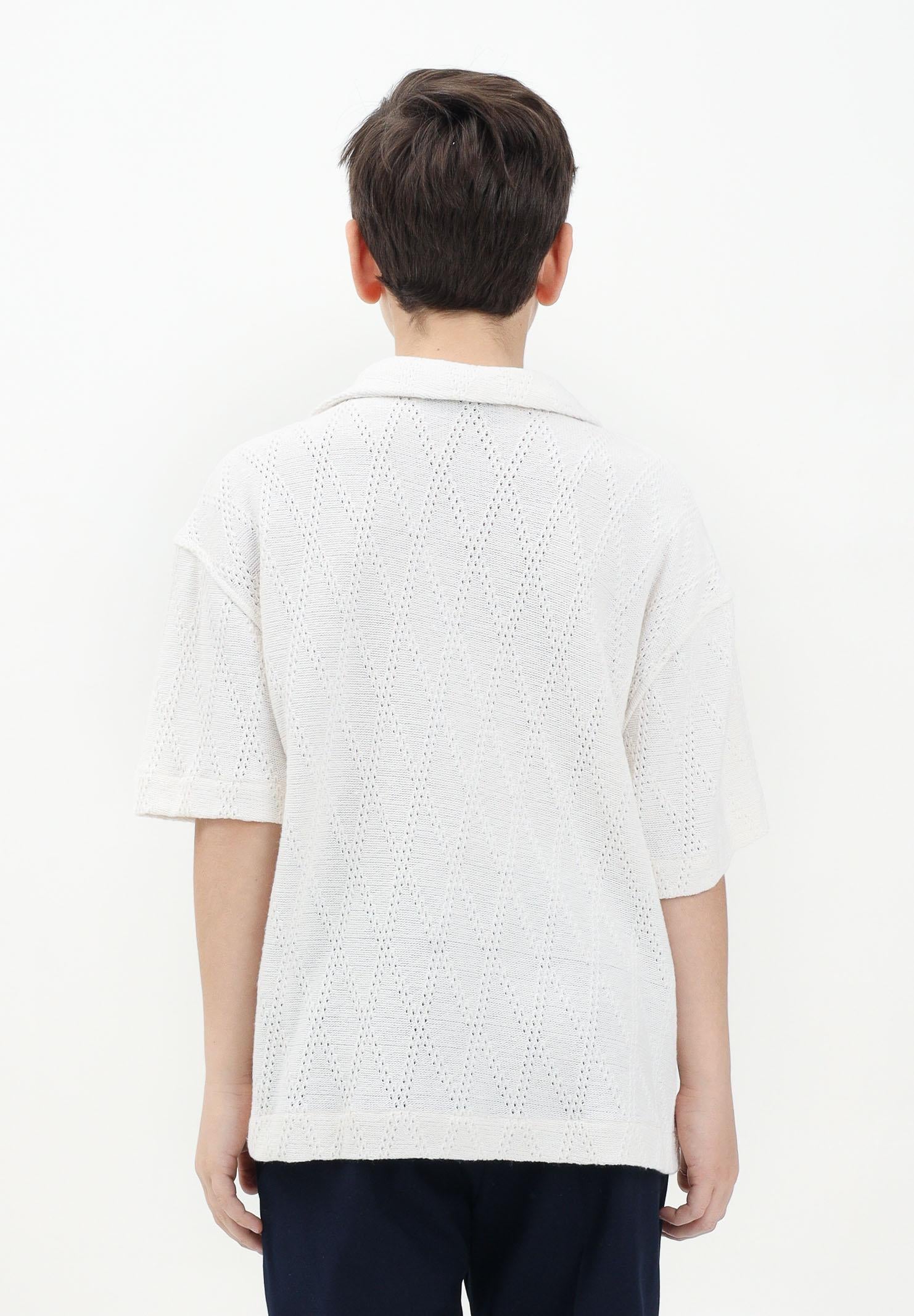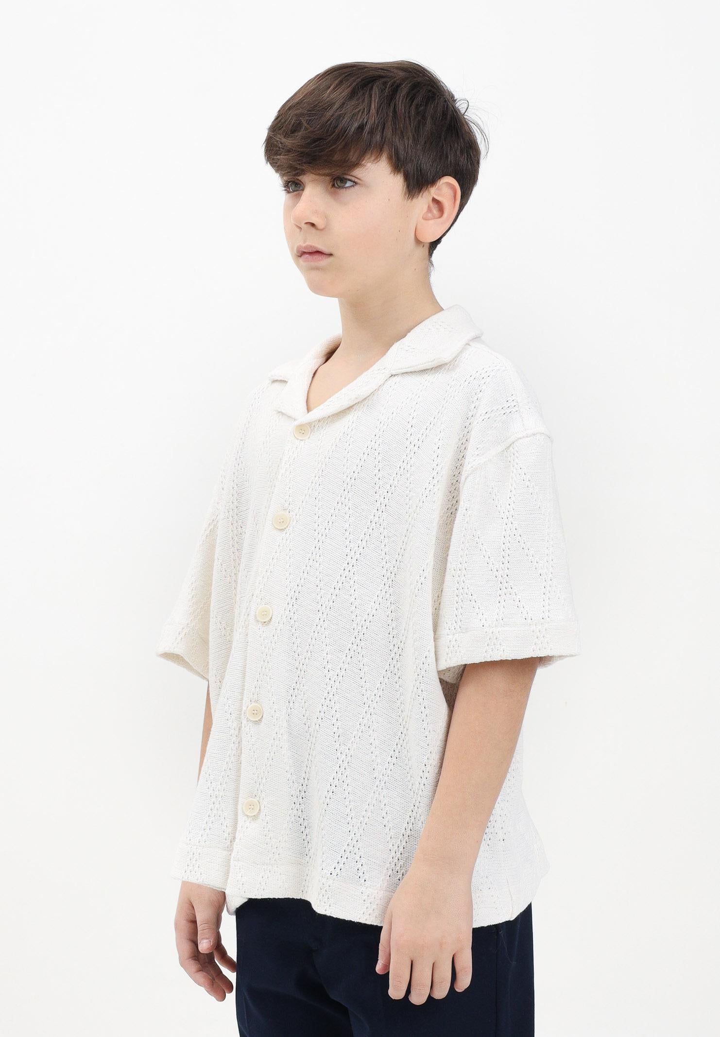 I'M BRIAN Cream short sleeve shirt for kids with openwork diamond pattern