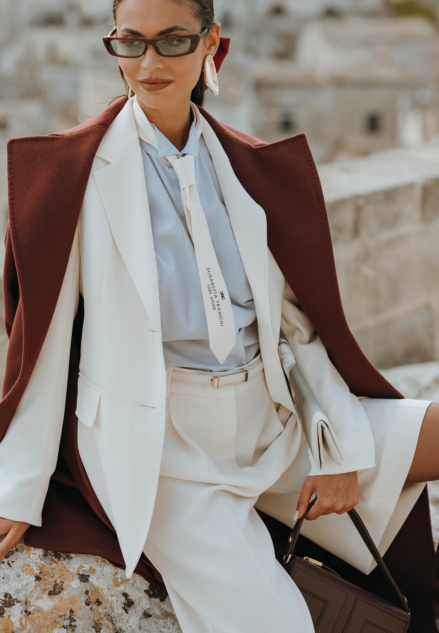 ELISABETTA FRANCHI Women's light blue long-sleeved shirt with tie