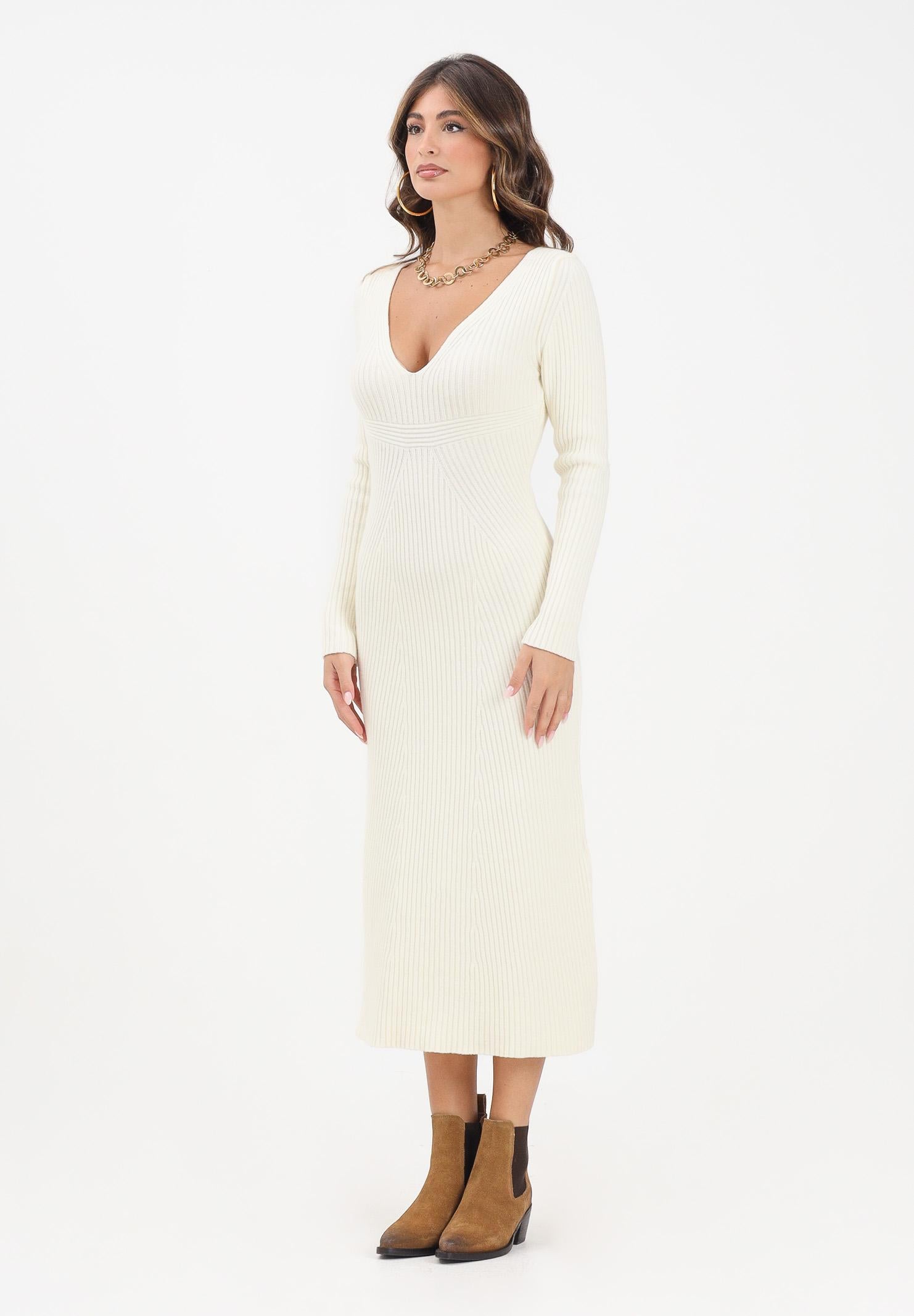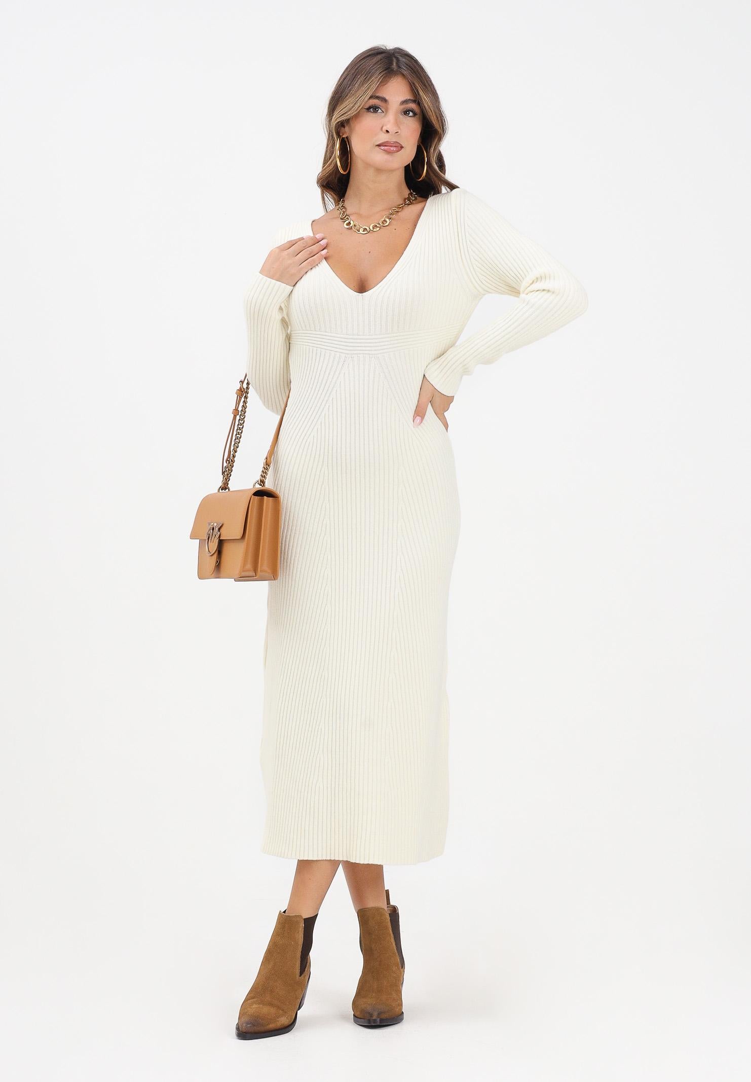 Women's cream midi dress, regular fit, autumn winter VSKD11032V3