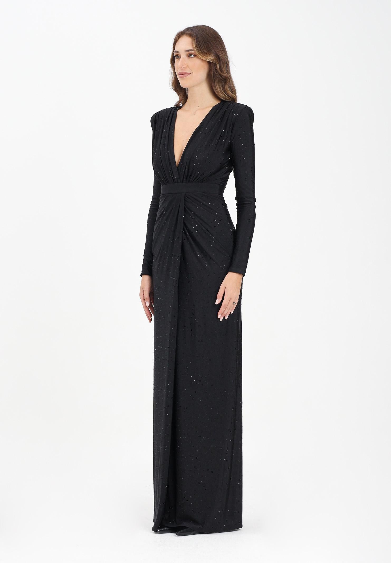 ALMA SANCHEZ Women's black Acacio long dress with bright micro rhinestones