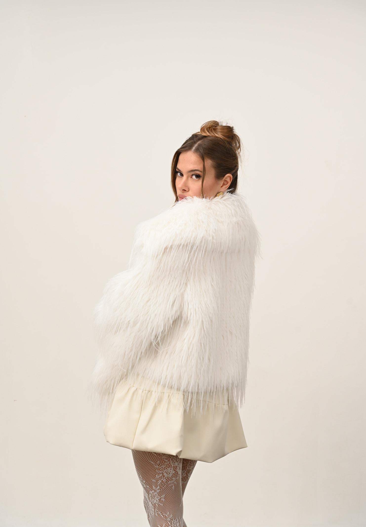 Women's white fur coat, regular fit, autumn winter 106045A2ZOZ14