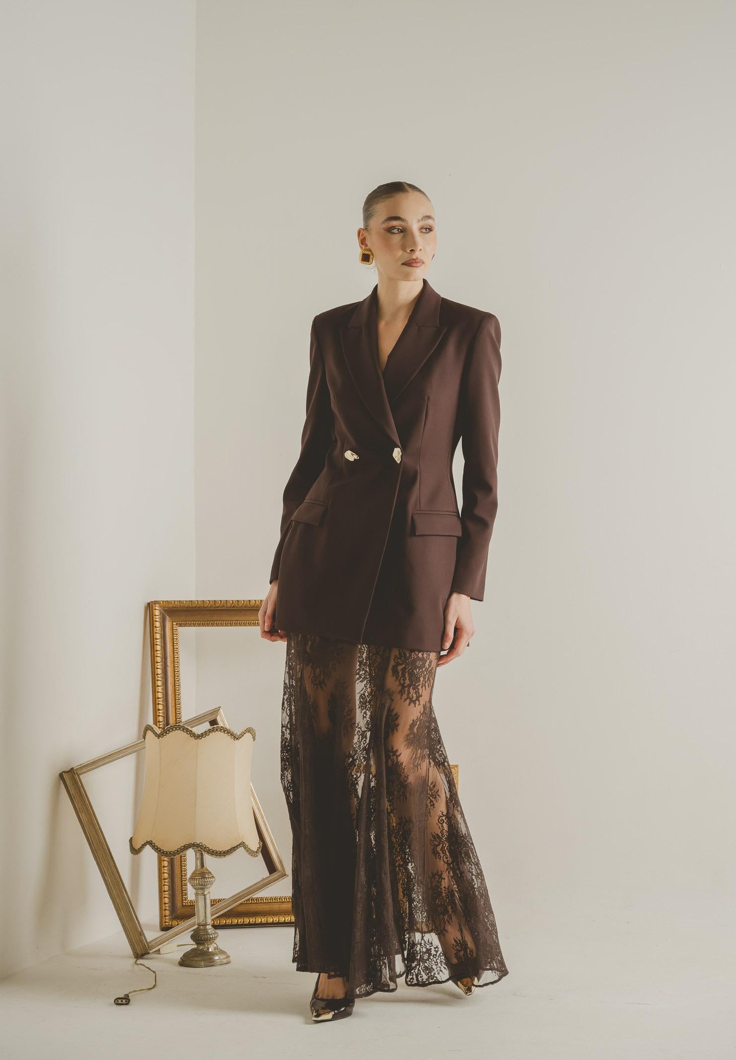 Women's brown double-breasted jacket, regular fit, autumn/winter PV2621MA