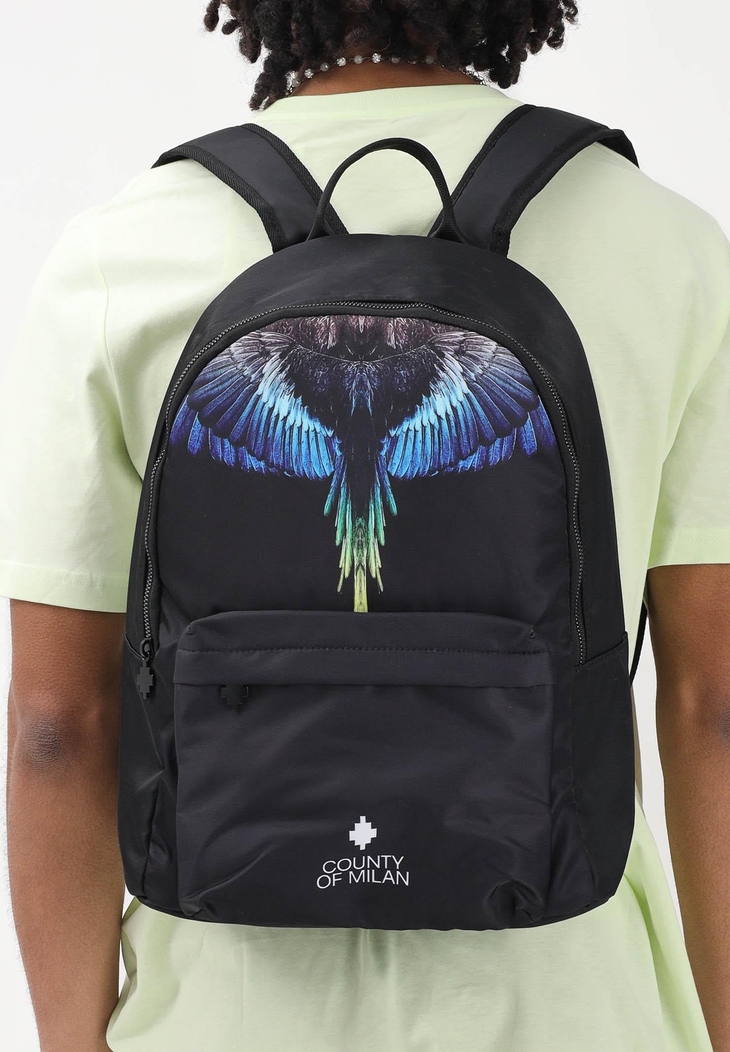 MARCELO BURLON COUNTY OF MILAN Black backpack for men and women with wings and logo print