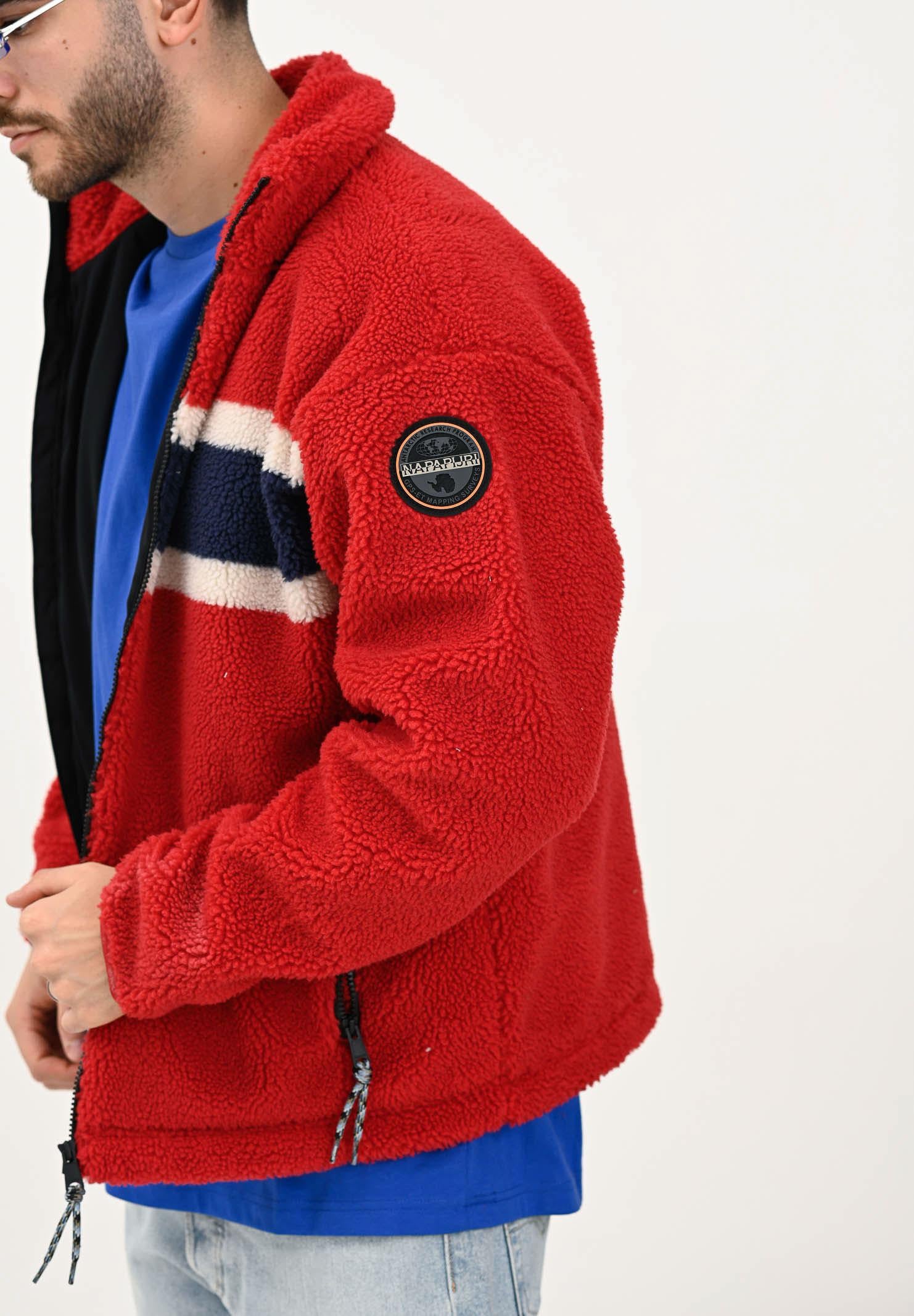 NAPAPIJRI Men's Red Fiemme Fleece Zip-Up Sweatshirt