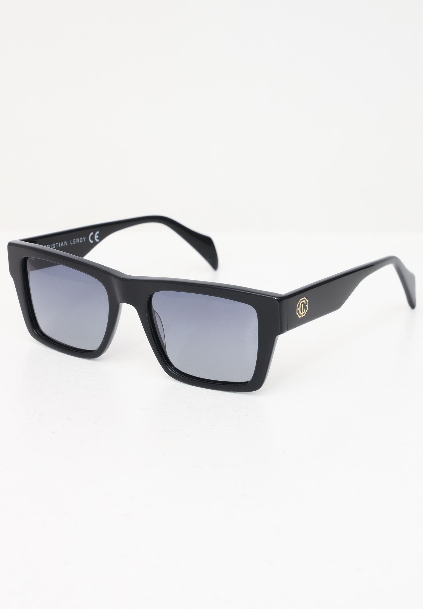 CRISTIAN LEROY Black sunglasses for men and women. The lenses are dark, offering excellent UV protection and a mysterious and sophisticated look. The square shape of the frame gives structure to the face, making them ideal for those looking for a contemporary and decisive style. Spring summer season.