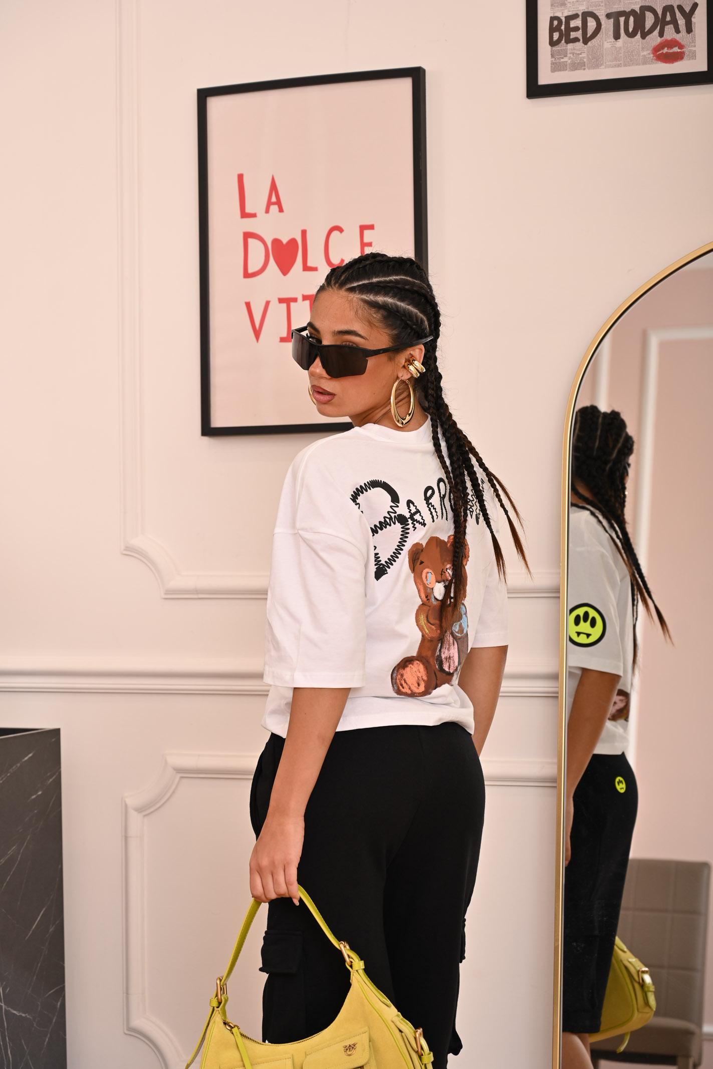 BARROW White short sleeve T-shirt with a simple yet eye-catching design. The shirt has a relaxed silhouette that offers comfort and freedom of movement, making it ideal for leisure or casual everyday wear. The "Barrow" logo is delicately embroidered on the chest in white, with a design that plays with texture for a subtle yet elegant visual effect. The bright color and minimalist style make it perfect for pairing with jeans or sports pants. The model is wearing a size 14A and the child is wearing a size 10A. The garment can be worn by a woman up to size 44. We recommend washing and ironing at medium temperature. Spring summer season.