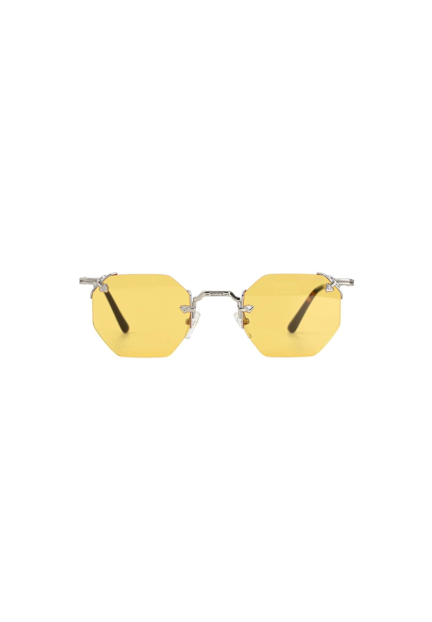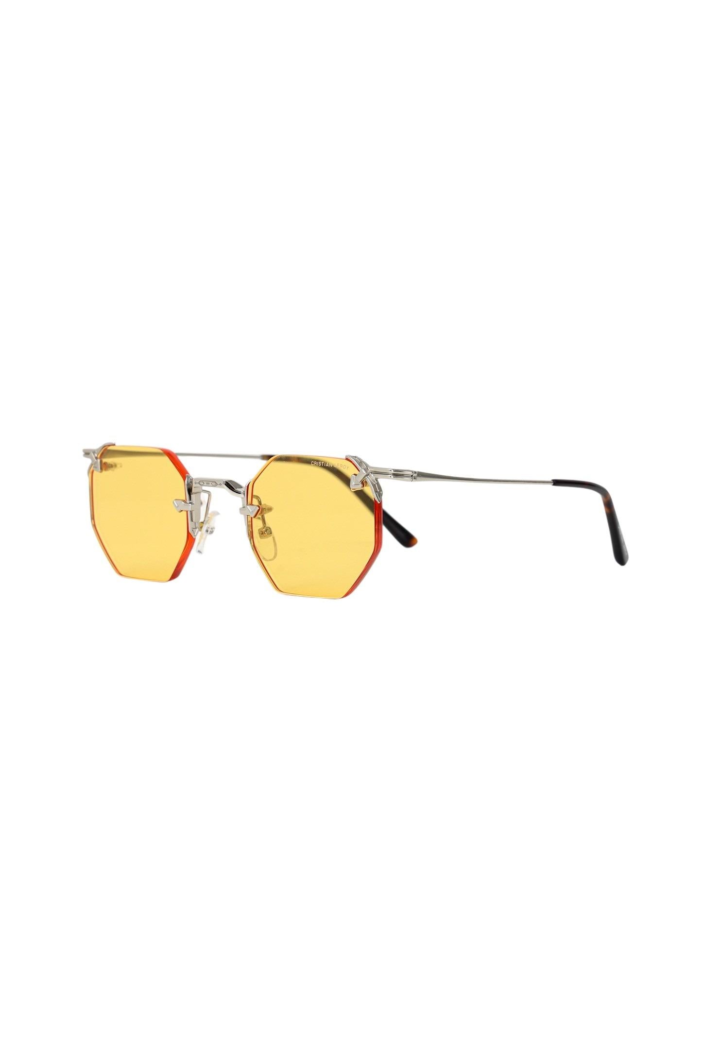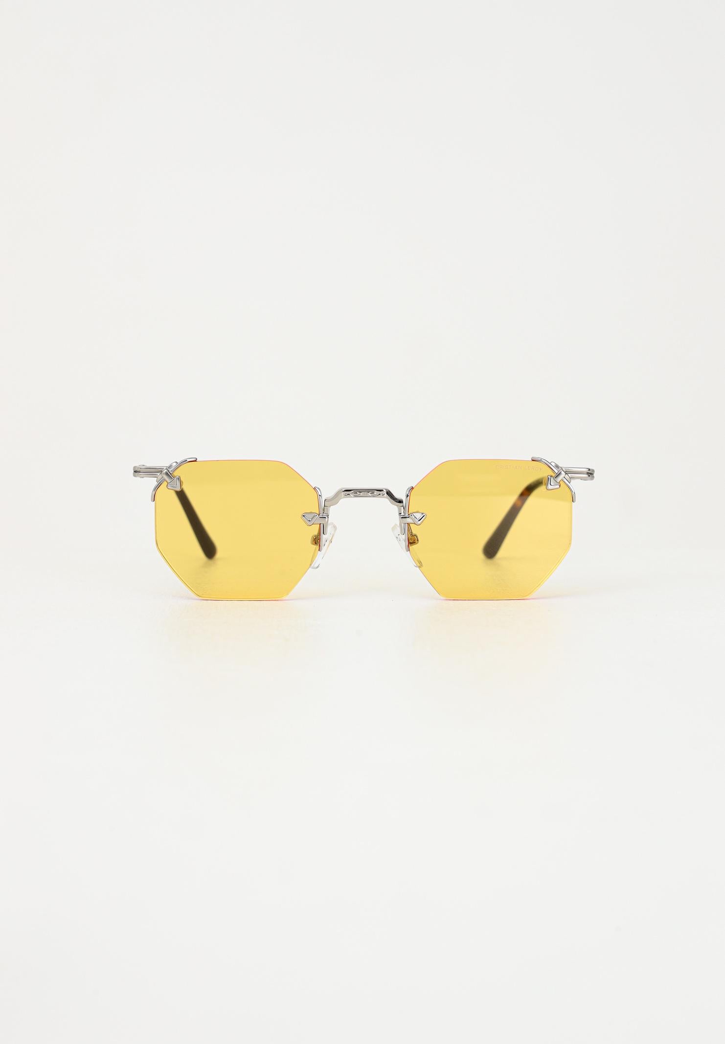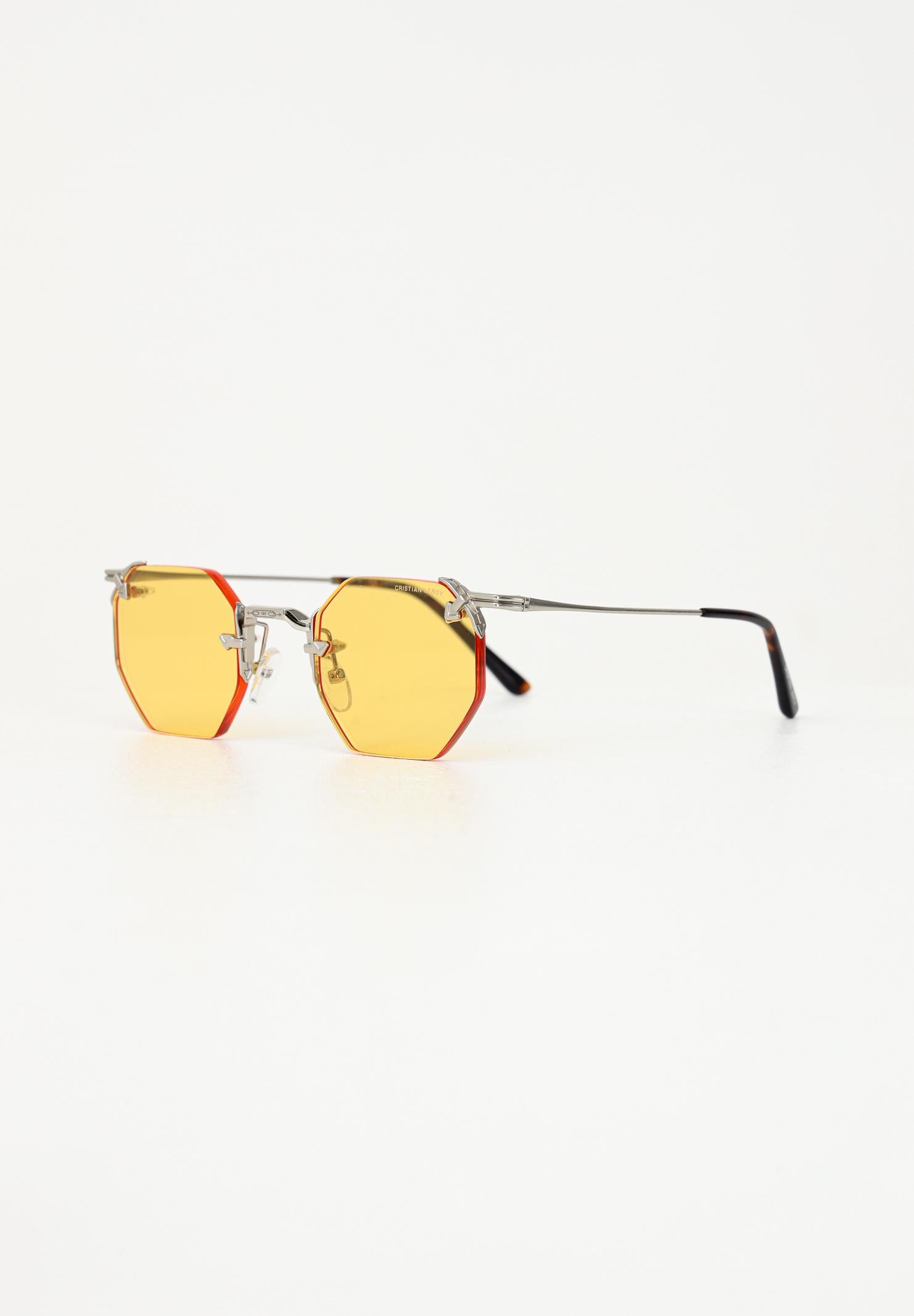 CRISTIAN LEROY Yellow glasses for men and women. The glasses feature a unique geometric shape, for a look that captures attention. The thin temples provide balance to the wider structure, for a refined and minimalist look. Spring summer season.