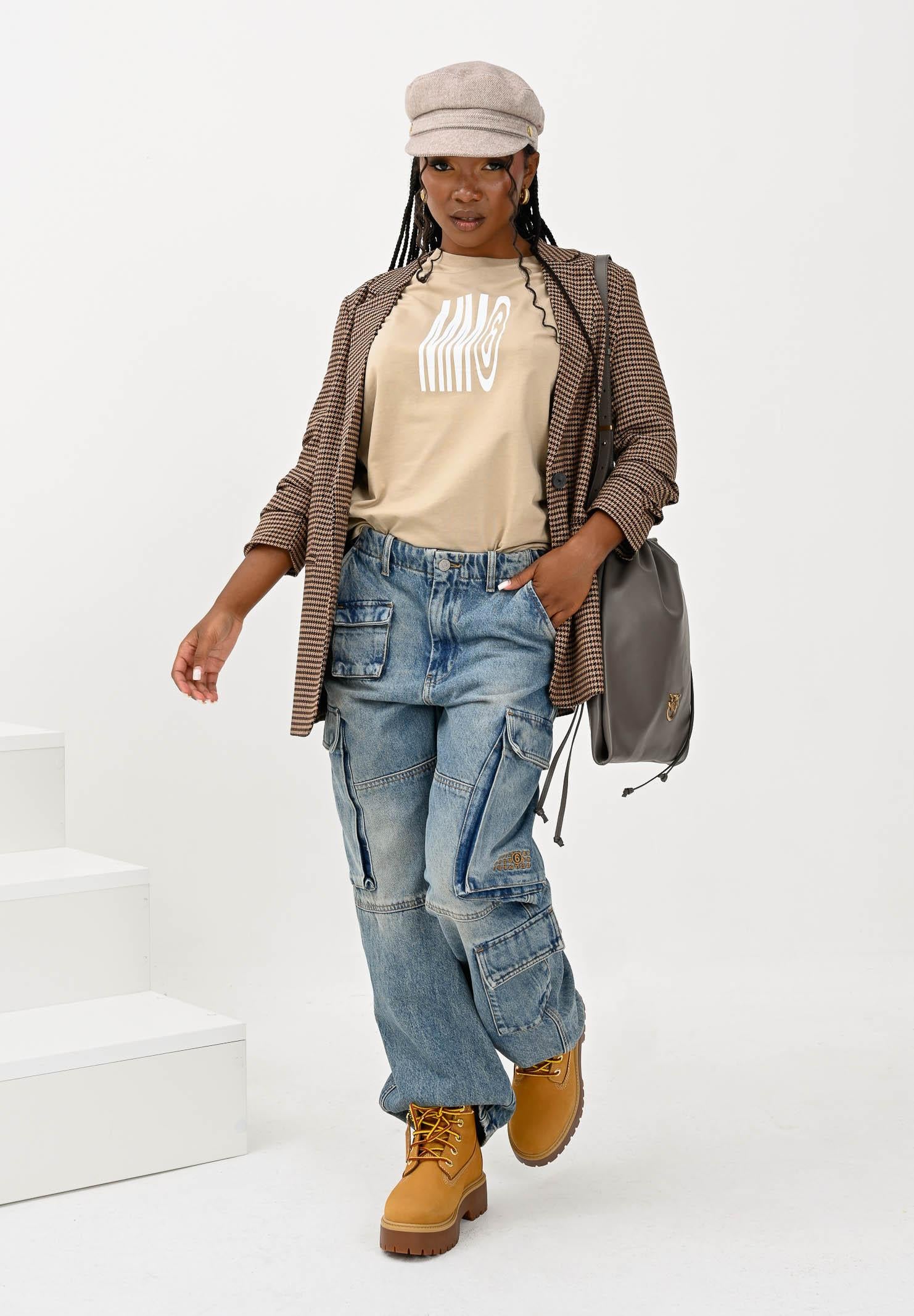 ONLY Women's beige single-breasted jacket with a houndstooth print adds elegance to your everyday wardrobe. The blazer has a regular fit and is made from a sustainable fabric blend of 64% recycled polyester, 34% viscose, and 2% elastane. This makes it not only elegant but also eco-friendly. With its classic lapel collar and single-button closure, you can effortlessly create a sophisticated look suitable for a variety of occasions. Thanks to its regular length and 3/4 sleeves, this blazer is comfortable and versatile. It's perfect for a casual workday or a dinner with friends. The subtle front welt pockets add functionality without sacrificing style. The model wears a size 40 and is 170 cm tall. We recommend washing and ironing at medium heat. Fall/Winter season.
