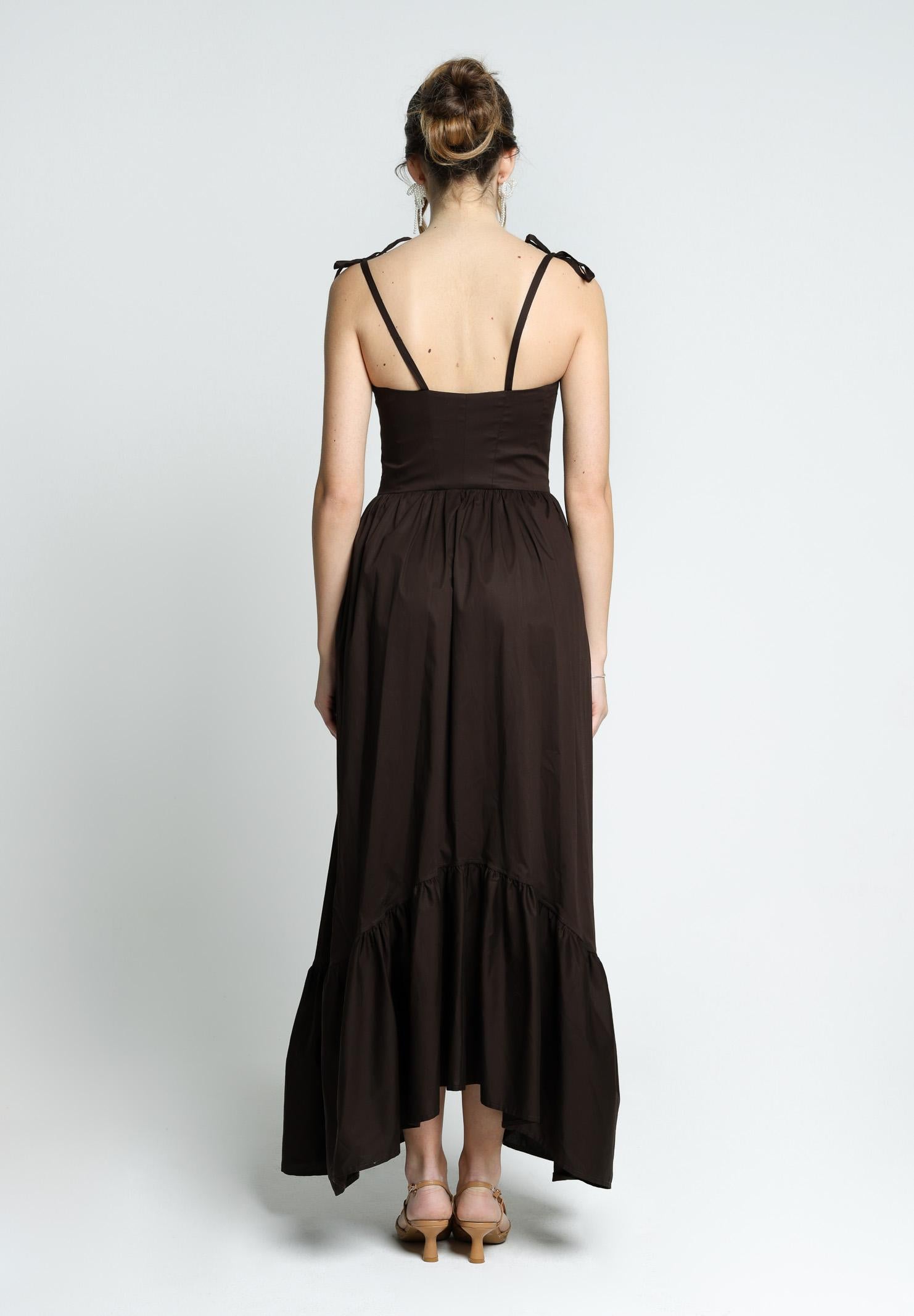 Elegant long dress brown women regular fit spring summer PV2505BROWN