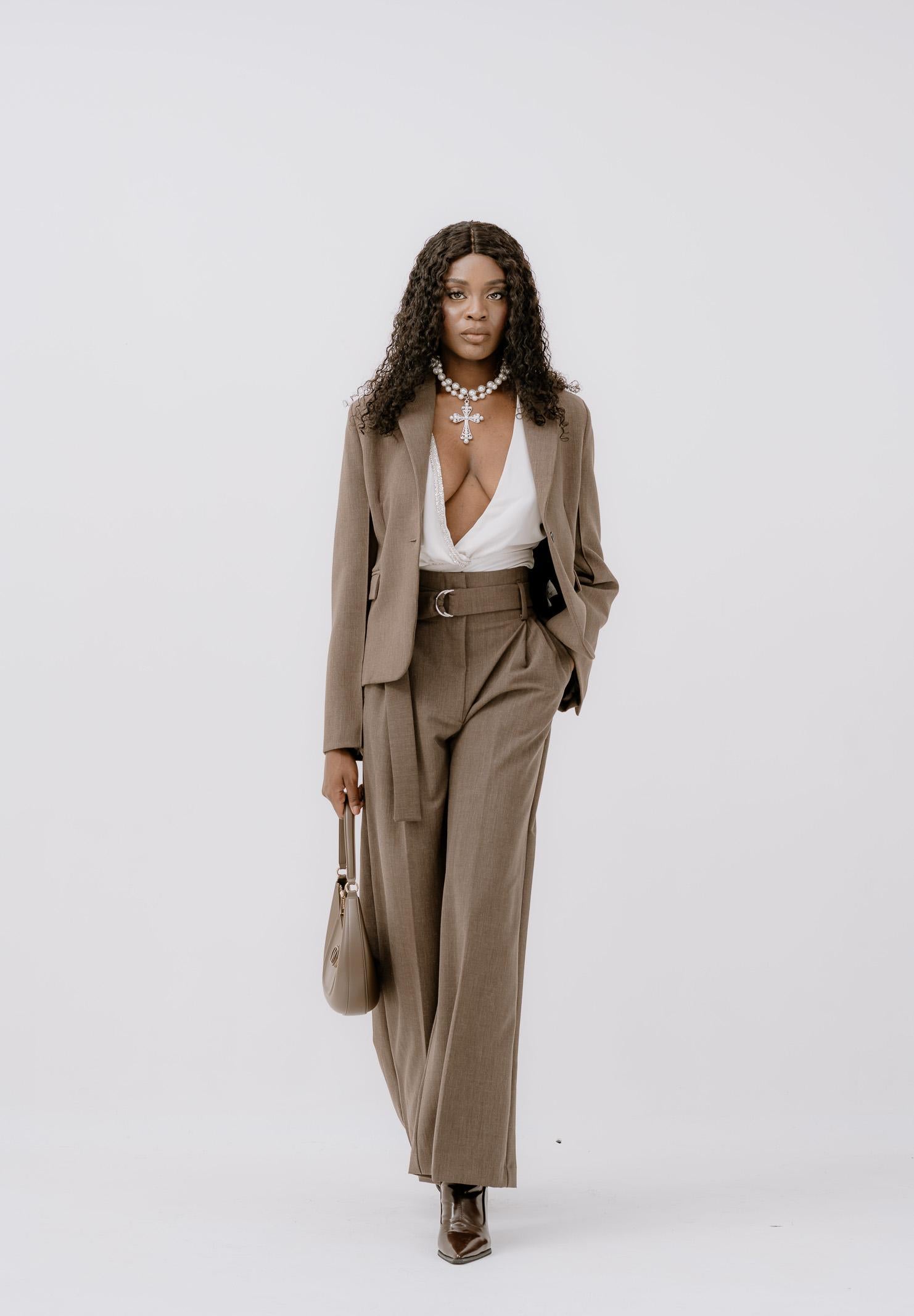 VICOLO Women's elegant brown pleated trousers