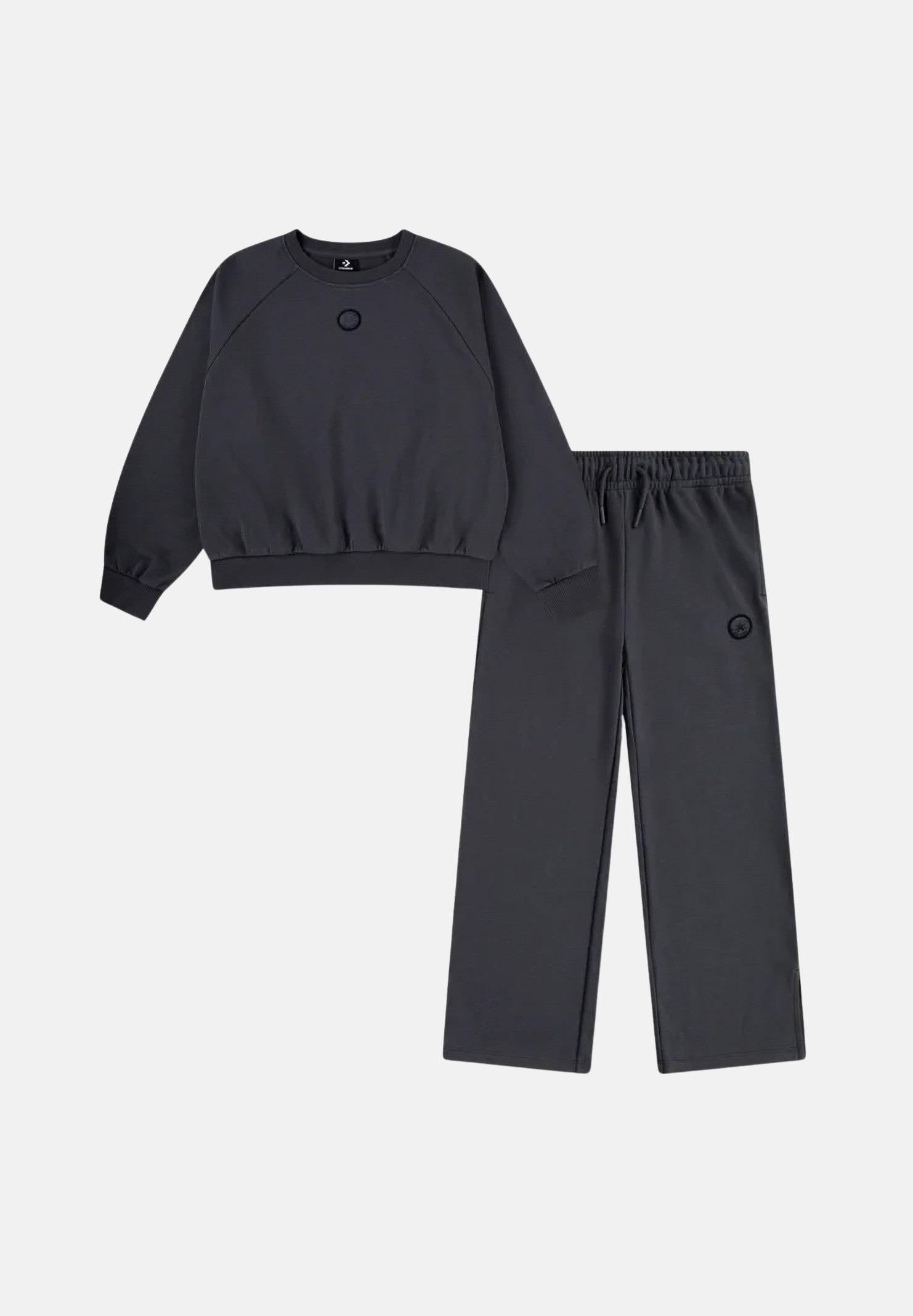 JORDAN Girls' gray tracksuit featuring a crew neck sweatshirt, long sleeves, and a tone-on-tone logo embroidered on the chest, and matching wide-leg pants with an elasticated drawstring waist and a logo on the thigh. Minimalist and comfortable, perfect for leisure time. Machine wash and iron at medium heat. Fall/Winter season available.