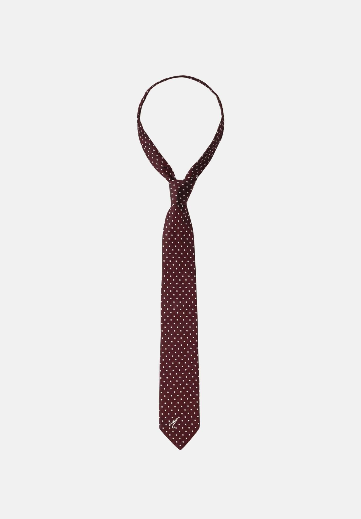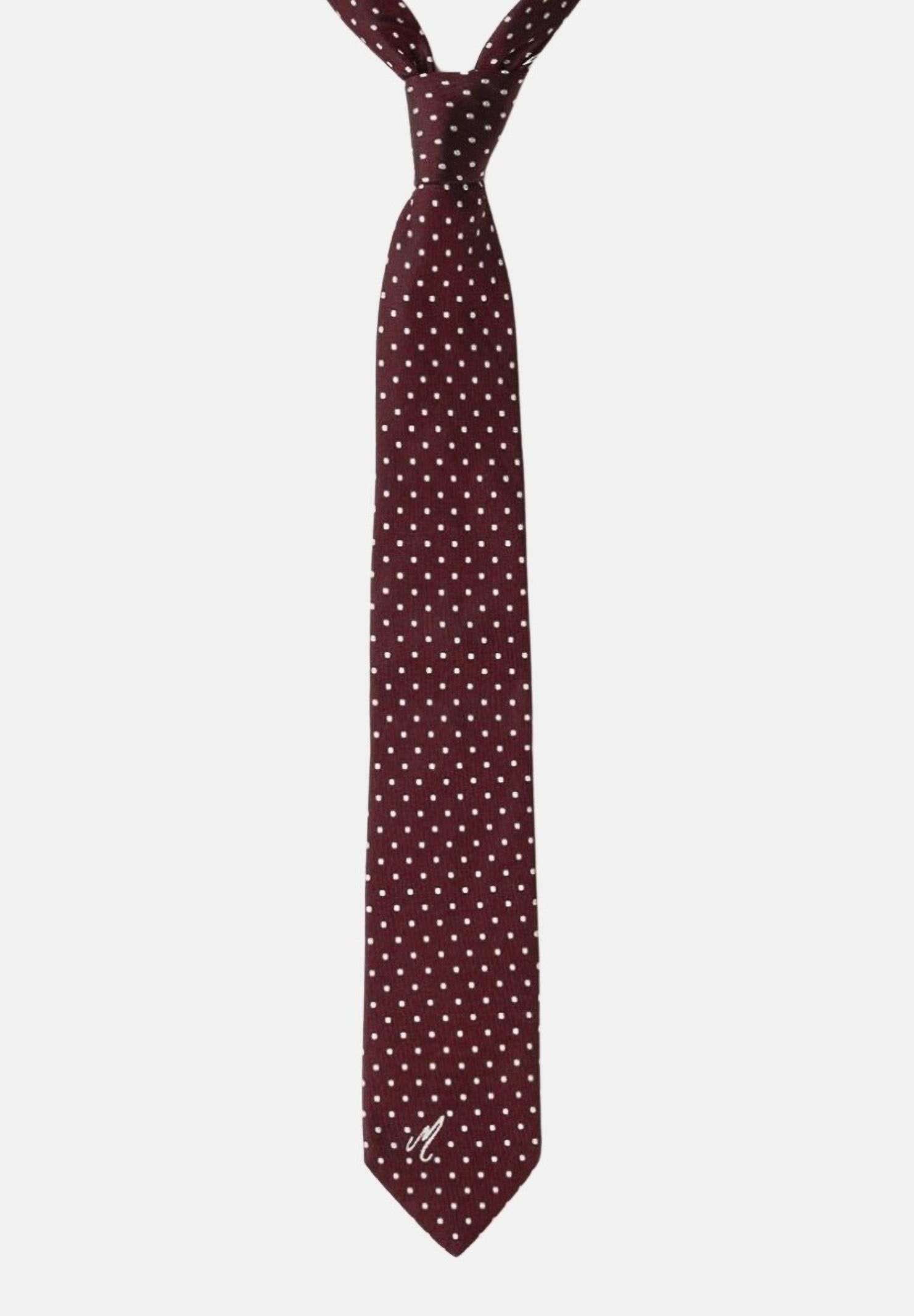 MAR DE MARGARITAS Women's burgundy tie with a micro polka dot pattern. The classic design is embellished with a subtle "M" embroidery at the bottom, adding a distinctive and sophisticated detail. Crafted from quality materials, it offers a smooth and soft texture, ideal for complementing tailored suits or formal outfits with a touch of sophisticated style. Available for the fall/winter season.