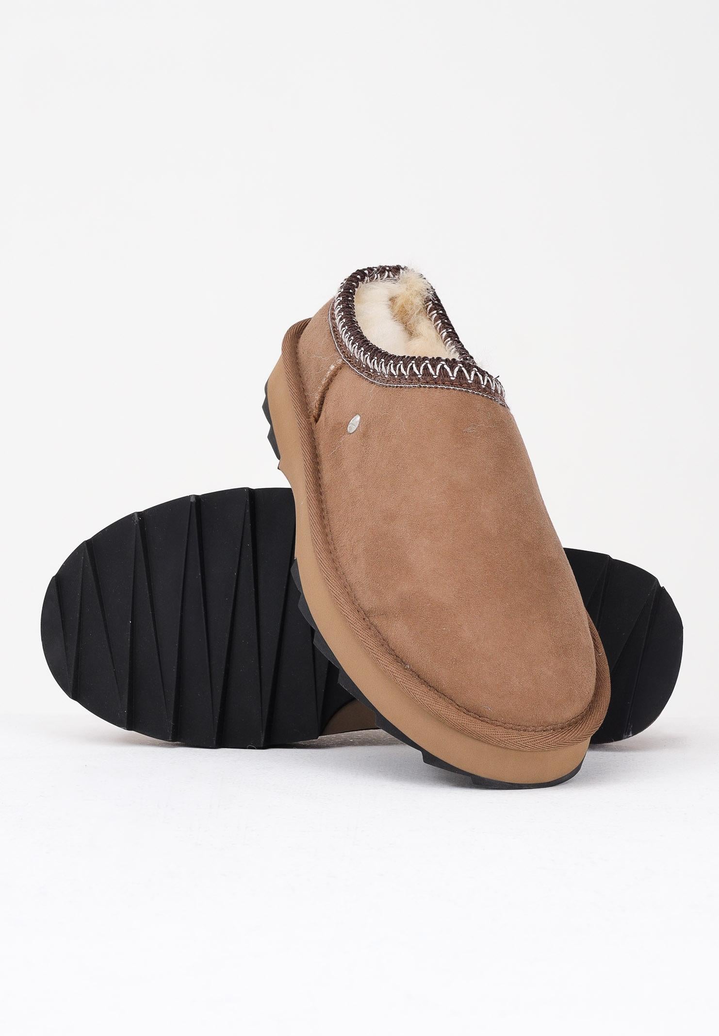 EMU Sharky Scuff women's beige clog. Effortlessly elegant and chic, the Sharky Scuff redefines casual elegance, elevating your loungewear and adding a touch of style to your urban look. Turn heads and enjoy all-day comfort with the Sharky Scuff. Fall/Winter season.