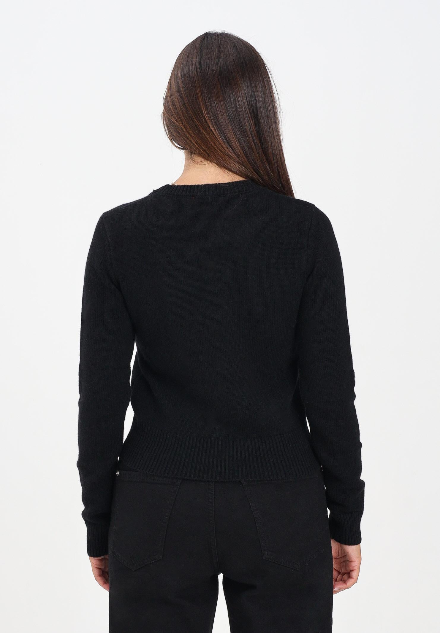DIESEL Black crew neck sweater for women, teenagers and children with Oval D logo