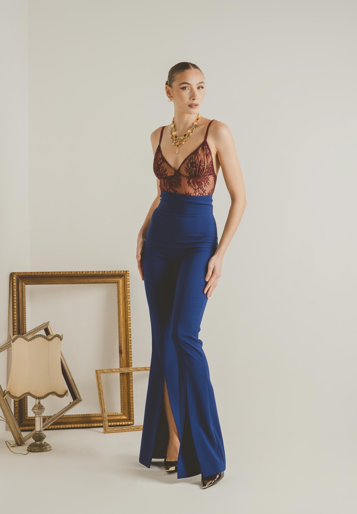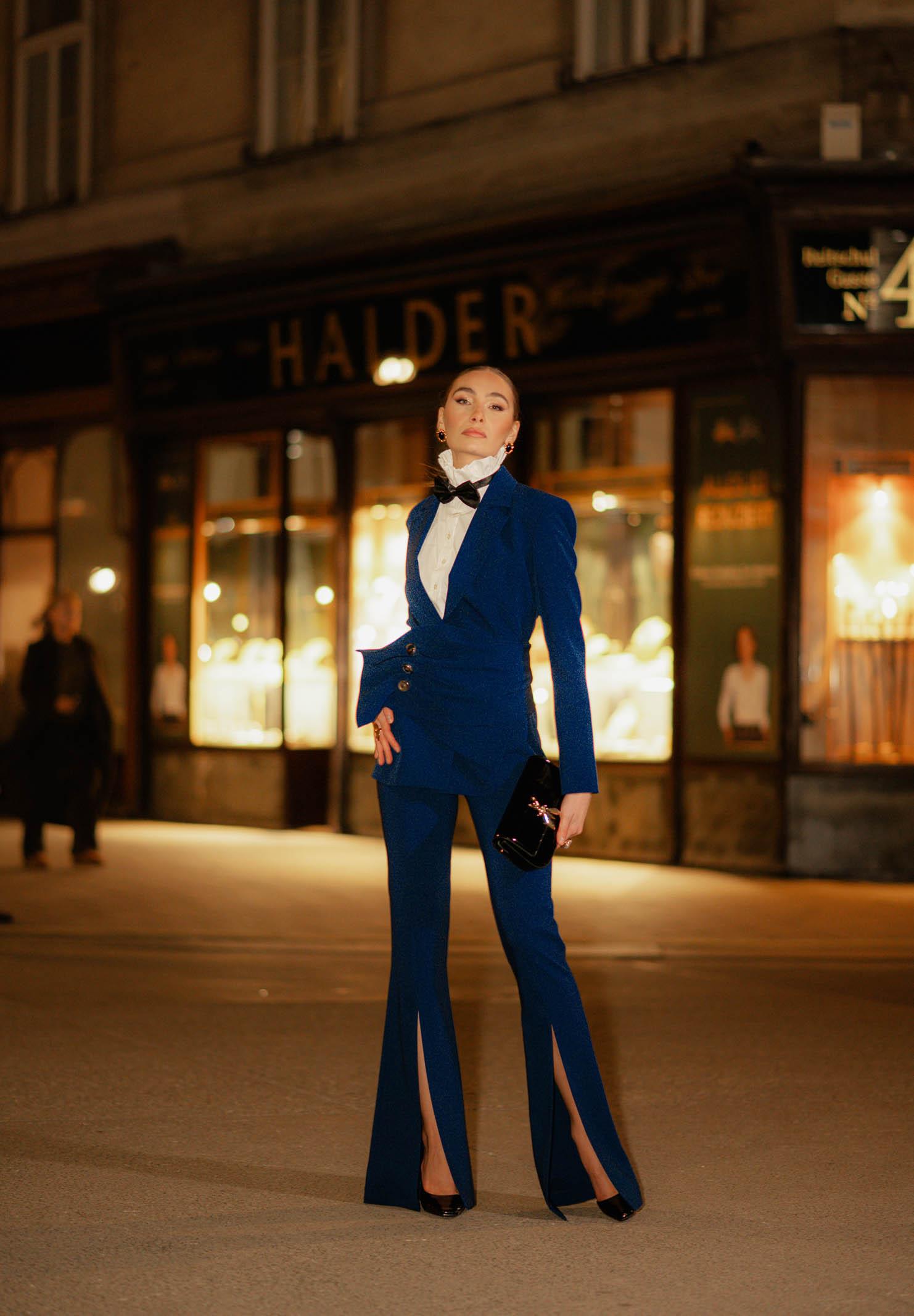 Women's elegant blue trousers, regular fit, autumn winter PV2609BQ