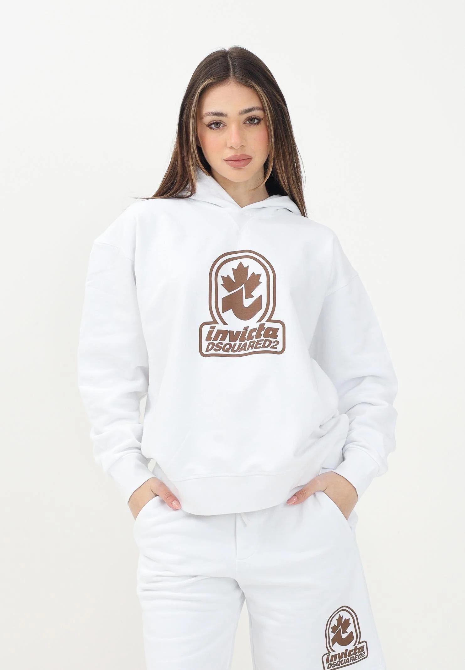 DSQUARED2 White Hoodie for Women, Teens and Children with "Invicta Dsquared2" Print