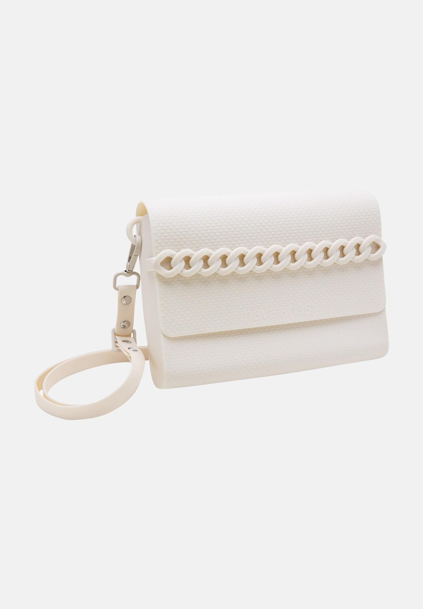 HAVAIANAS Havaianas Casual Ivory Shoulder Bag for Women. Havaianas Casual Bag Chains: Style, Functionality and Authenticity in One Havaianas Casual Bag Chains are the perfect combination of style, functionality and authenticity. Made from 100% silicone, this unique bag features the iconic texture inspired by Havaianas flip-flops, giving it a distinctive and modern look. Compact yet roomy, it is designed to hold all your everyday essentials, such as your phone, wallet, earphones, keys and makeup, ideal for an on-the-go lifestyle. Featuring a protective flap closure that seamlessly integrates with the chain detail, it ensures your belongings are kept safe. Thanks to the adjustable strap, you can customize the fit for maximum comfort, whether you wear it on your shoulder or cross-body. Durable, lightweight and available in versatile designs, Havaianas Casual Bag Chains are the essential accessory for casual outings and elegant occasions. Find the model that best suits you and enhance your everyday style. Measurements: 15.5cm x 20cm x 5.5cm. Spring summer season.