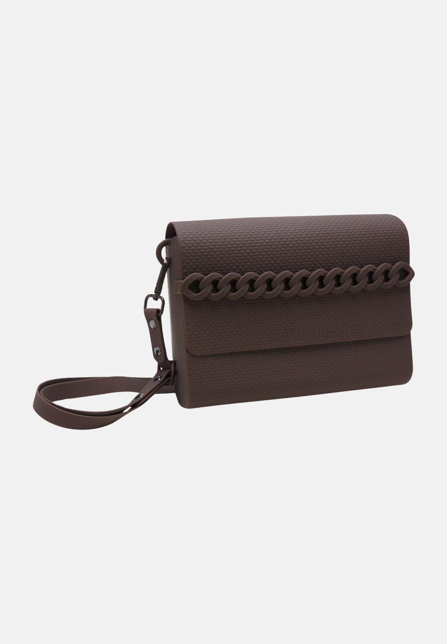 HAVAIANAS Havaianas Casual Brown Women's Shoulder Bag. Havaianas Casual Bag Chains: Style, Functionality and Authenticity in One Havaianas Casual Bag Chains are the perfect combination of style, functionality and authenticity. Made from 100% silicone, this unique bag features the iconic Havaianas flip-flop-inspired texture, giving it a distinctive and modern look. Compact yet roomy, it is designed to hold all your everyday essentials, such as your phone, wallet, earphones, keys and makeup, perfect for an on-the-go lifestyle. Featuring a protective flap closure that seamlessly integrates with the chain detail, it ensures your belongings are kept safe. With an adjustable strap, you can customize the fit for maximum comfort, whether you wear it over the shoulder or cross-body. Durable, lightweight and available in versatile styles, Havaianas Casual Bag Chains are the essential accessory for casual outings and elegant occasions. Find the style that best suits you and enhance your everyday style. Measurements: 15.5cm x 20cm x 5.5cm. Spring summer season.