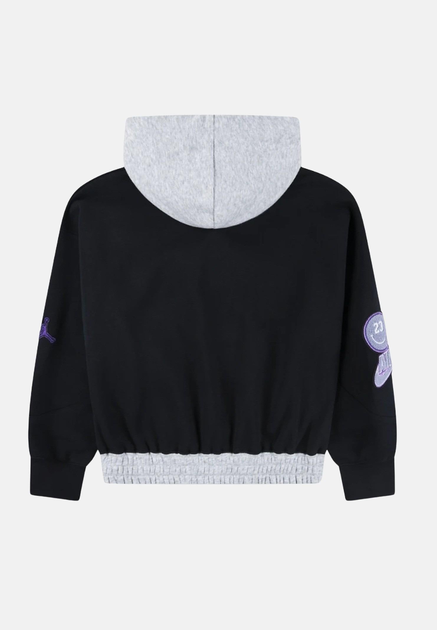 JORDAN Girls' black hoodie featuring grey inserts and logo