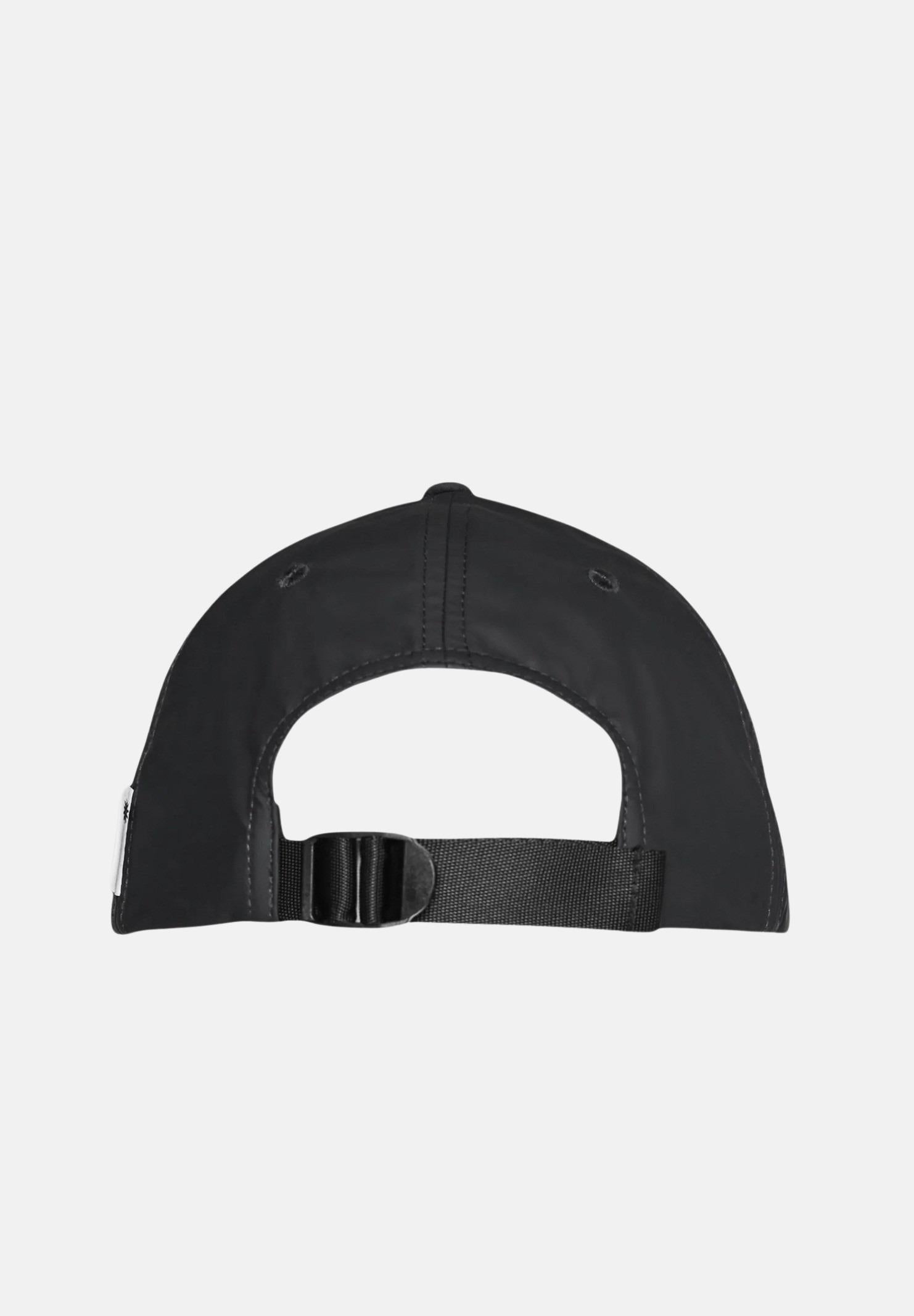 RAINS Cap Visor Hat Grey for Men and Women. The Cap features a curved visor and a six-panel design, with an adjustable fabric strap integrated on the back with an adjustment buckle. It features ventilation eyelets for breathable comfort. Autumn winter season.