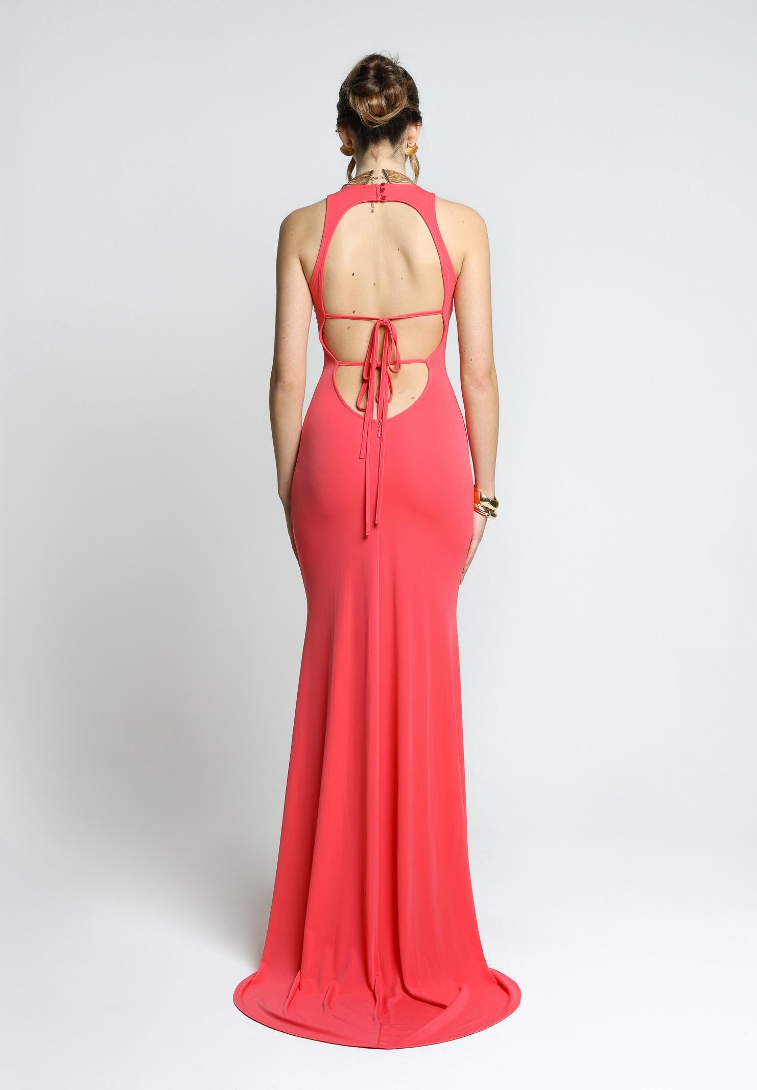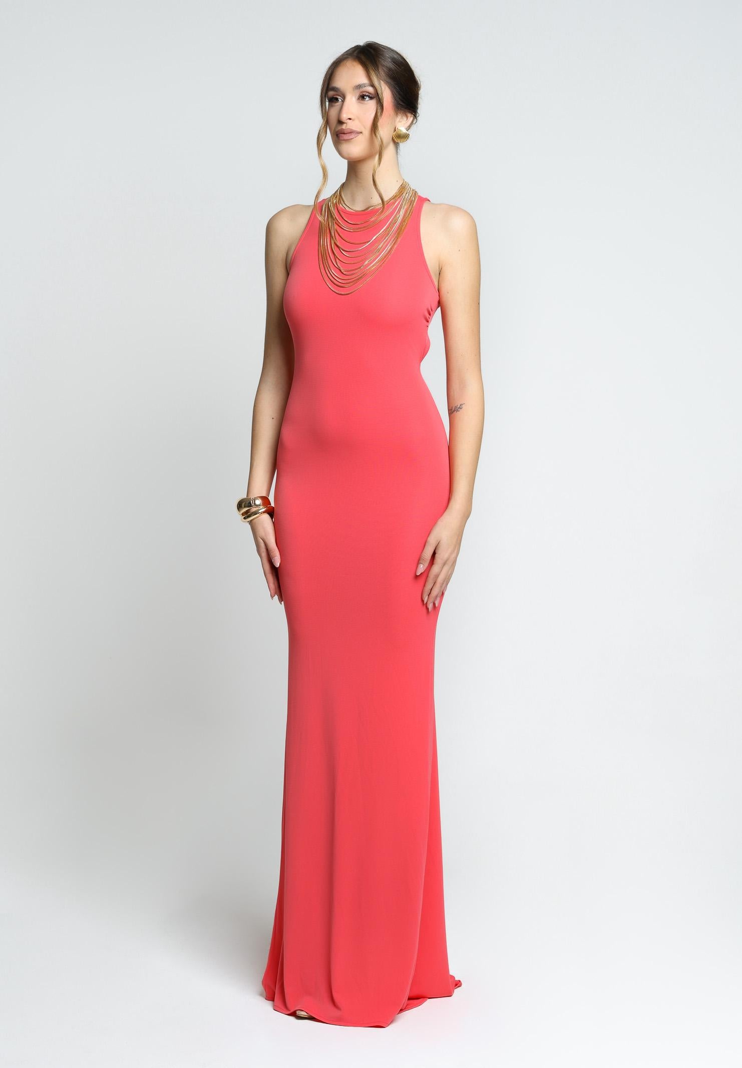 Elegant long dress orange women regular fit spring summer PV25010CORALLO