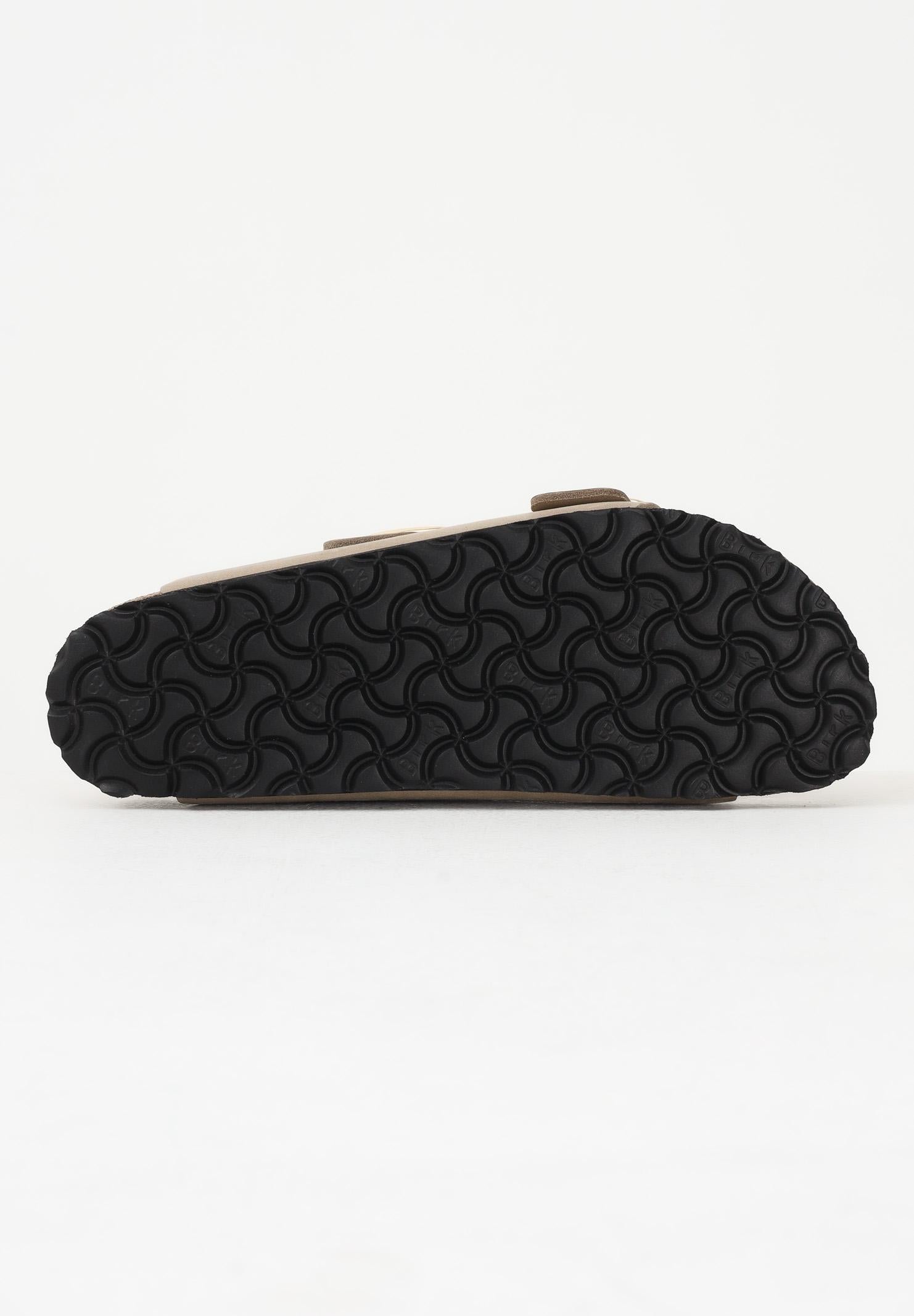 BIRKENSTOCK Arizona Big Buckle Women's Slippers in Tobacco Brown. The BIRKENSTOCK Arizona is a true classic that has delighted men and women for decades with its timeless design. The Big Buckle version features a large, elegant pin buckle, a beautiful detail that stands out on these very understated sandals. The semi-exquisite footbed is covered in soft, smooth leather in a color-coordinated with the shoe. The upper is made of particularly thick, oiled nubuck leather with open seams. Available for the spring/summer season.