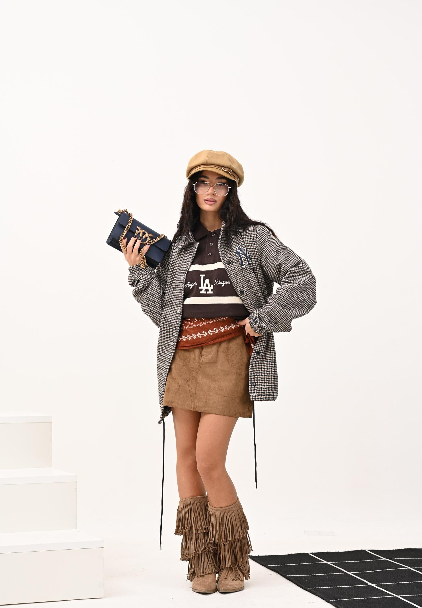 ONLY Women's Short Skirt in Soft Suede-Effect Faux Leather in Tan