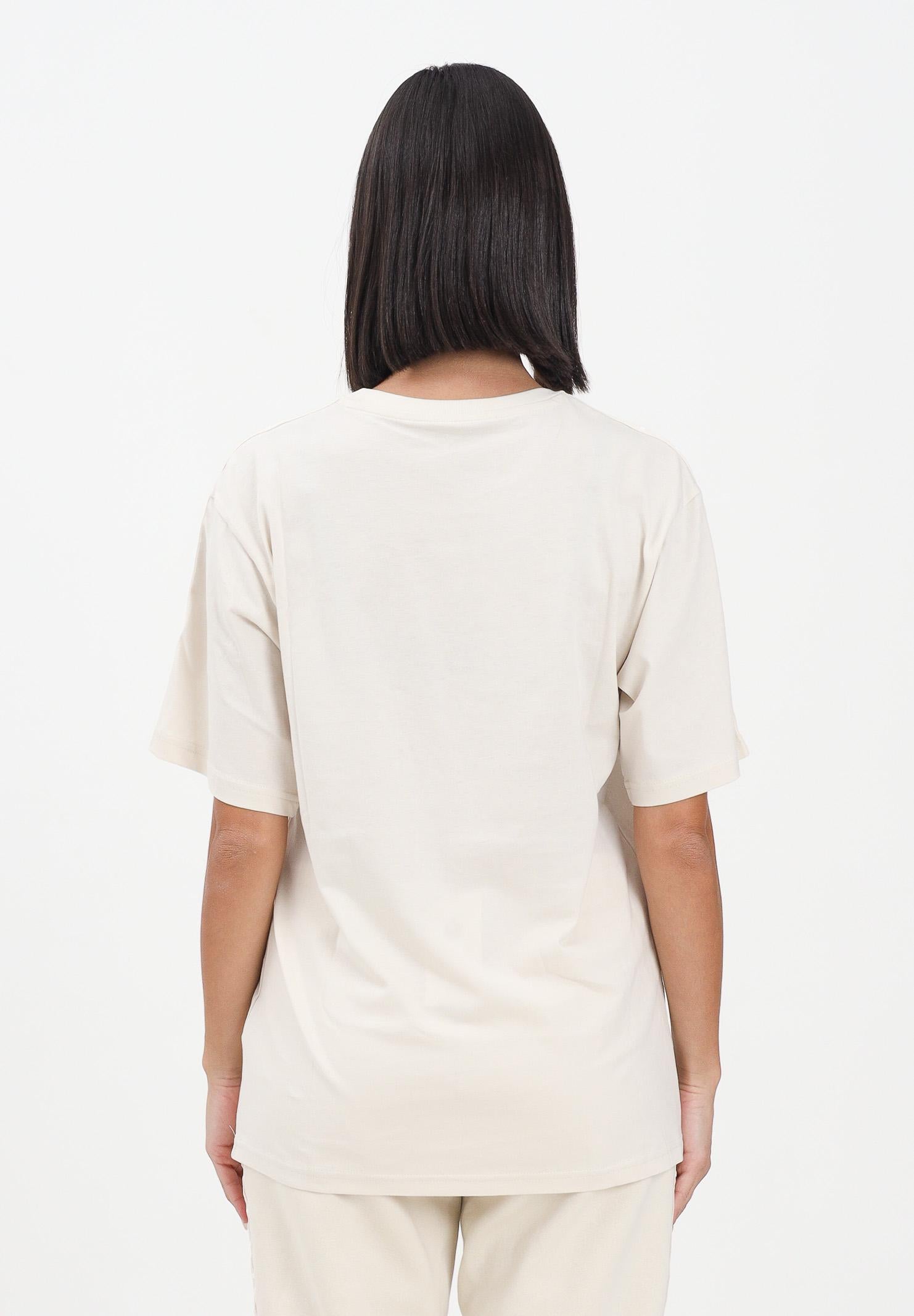 Women's cream short-sleeved sporty T-shirt, regular fit, autumn winter 68500987