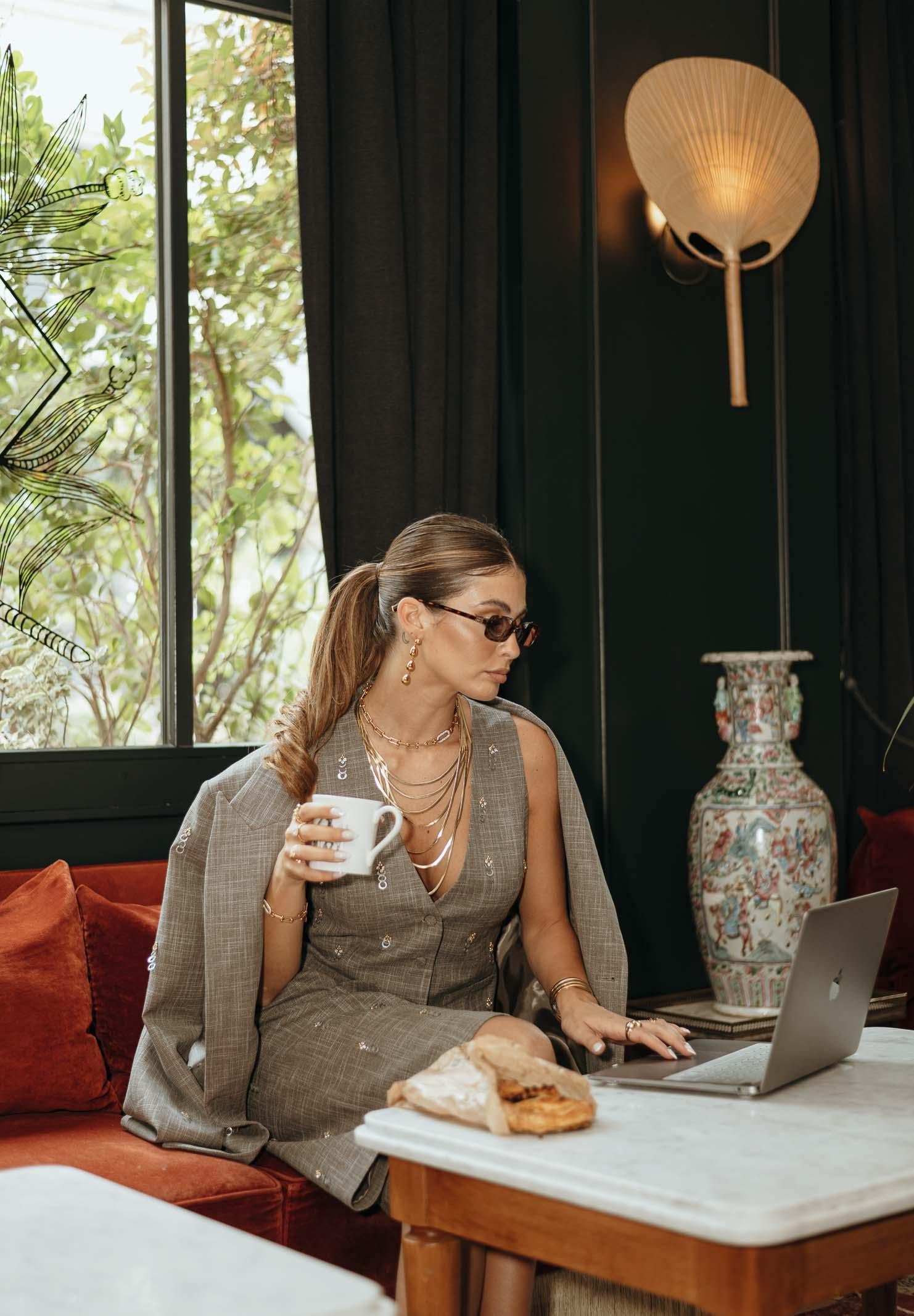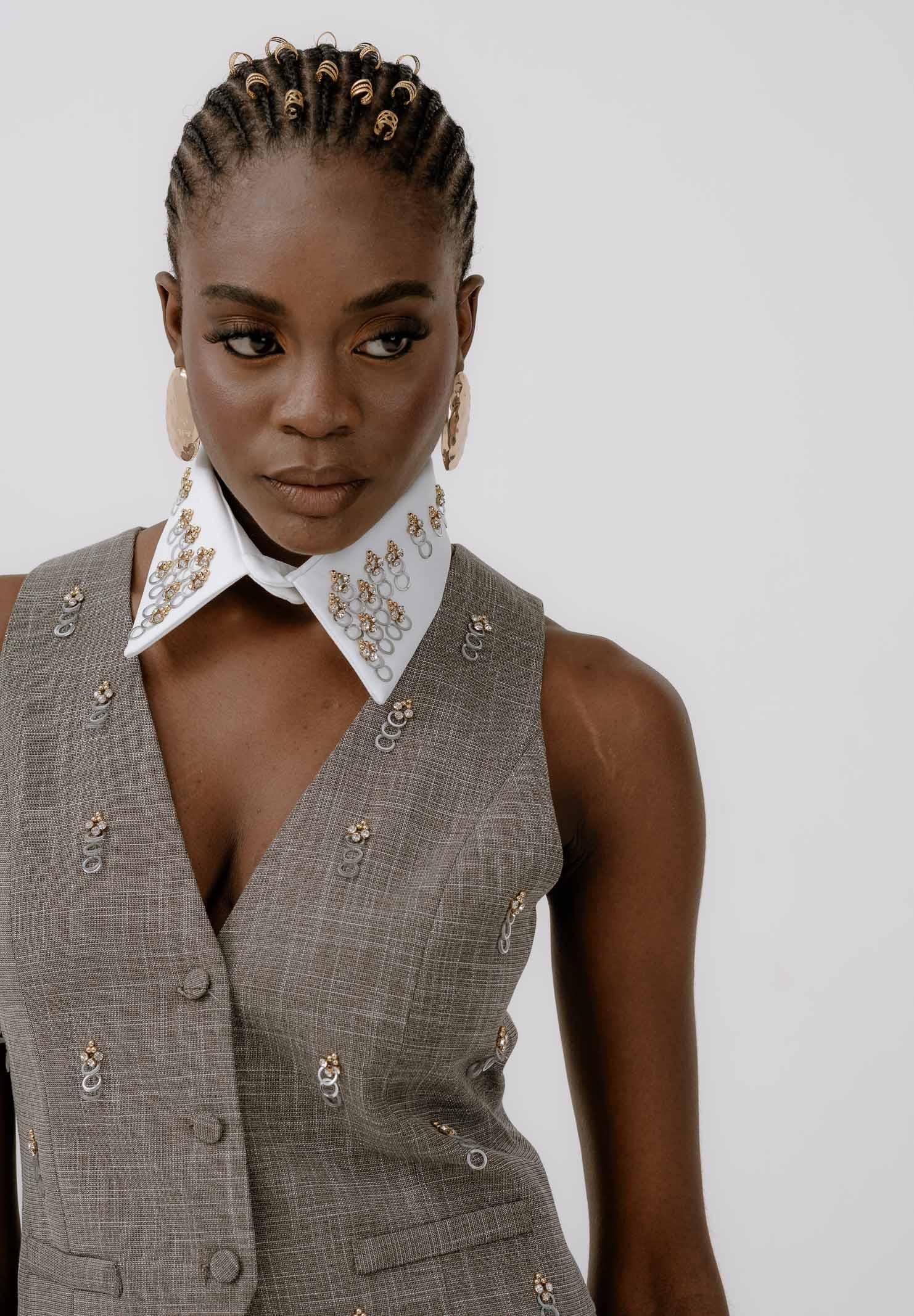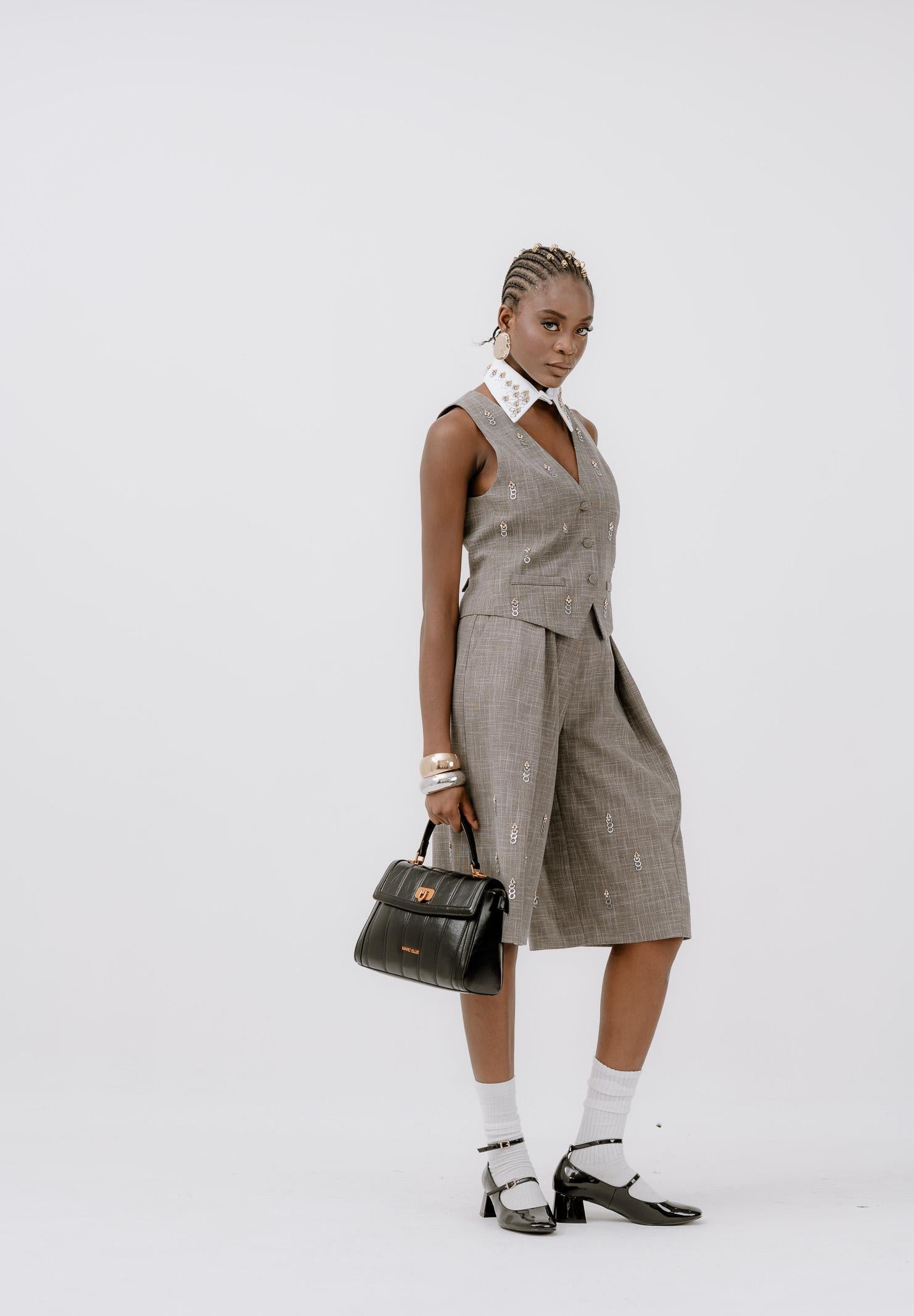 SIMONA CORSELLINI Women's grey vest enriched with small metallic applications