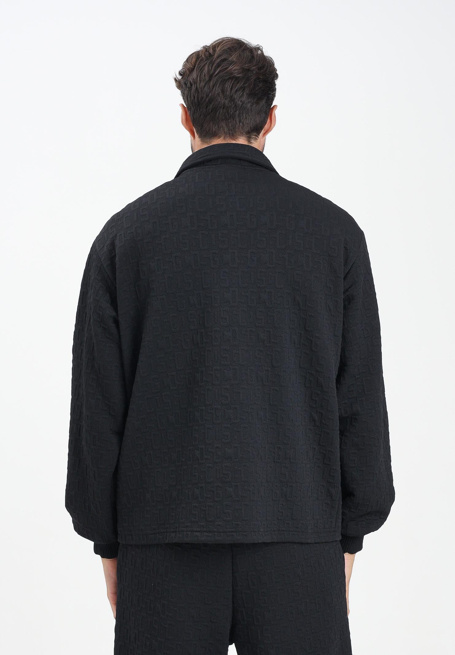 GCDS Black zip-up sweatshirt for men and women featuring monogram workmanship