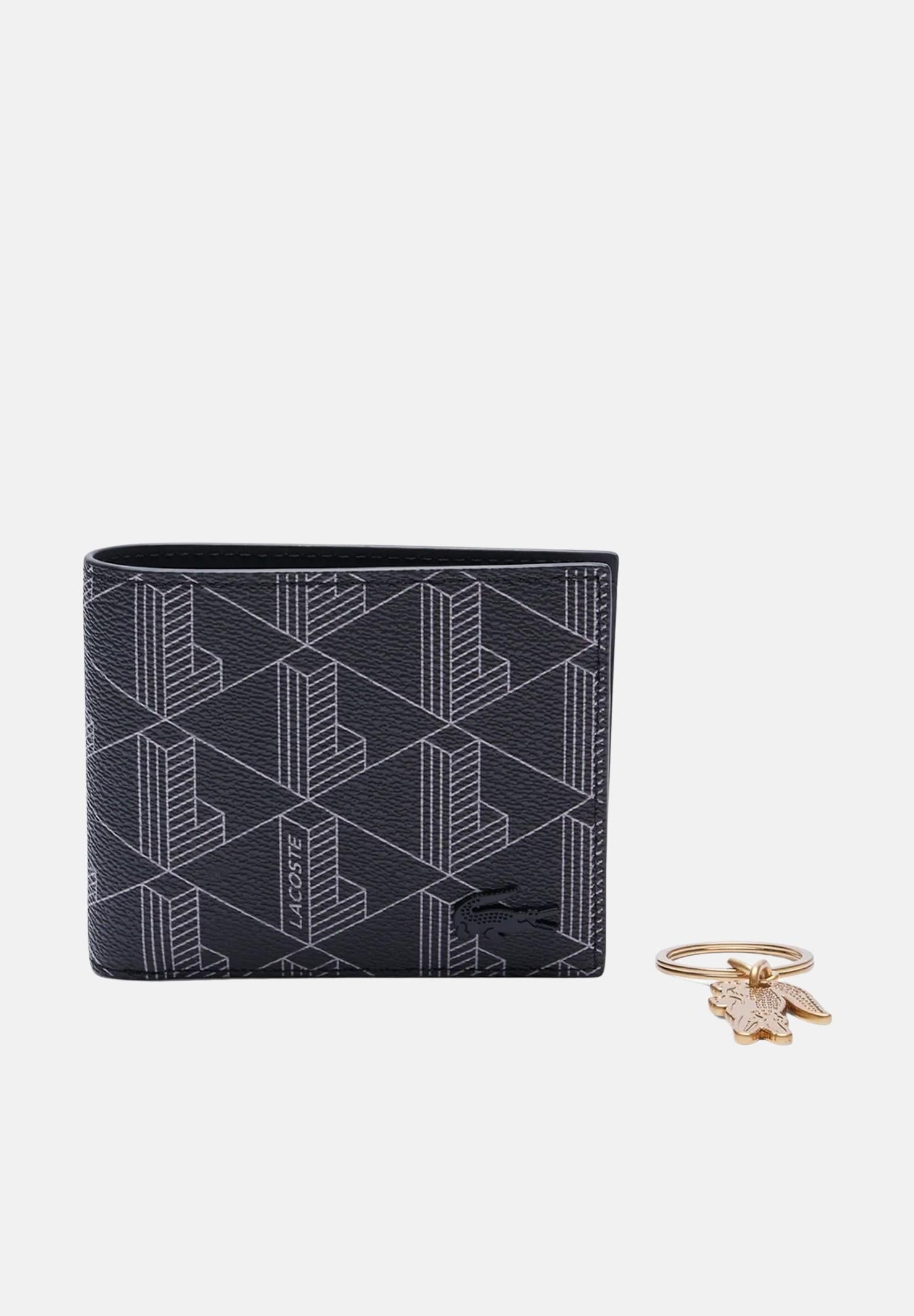 LACOSTE a compact monogram wallet and a metal key ring for men