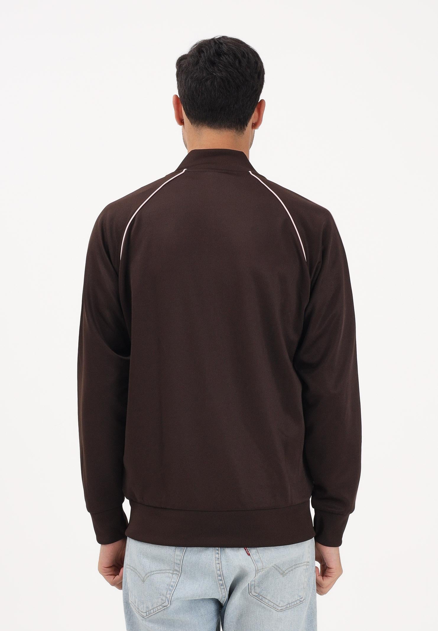 ADIDAS ORIGINALS SST Zip-Up Sweatshirt in brown and pink for men and women. The SST Track Top is a timeless classic that adds a touch of retro to your everyday style. Whether you're hitting the gym or meeting friends, this top easily adapts to your lifestyle. Inspired by the iconic heritage of the Originals collection, this tracksuit combines a slim fit with a distinctive bomber neckline, creating a sleek and modern silhouette. Crafted with an interlock construction, the fabric offers comfort and durability, making this piece an essential for everyday wear. A full-length zip adds a classic detail to the look and makes it easy to layer. The bold look and tailored aesthetic of this tracksuit make it a standout piece for your wardrobe. Discover the perfect mix of style and functionality and let adidas Originals elevate your everyday look. The model is wearing a size L and is 187 cm tall. The model is wearing a size S and is 175 cm tall. We recommend washing and ironing at medium heat. Spring/Summer season.