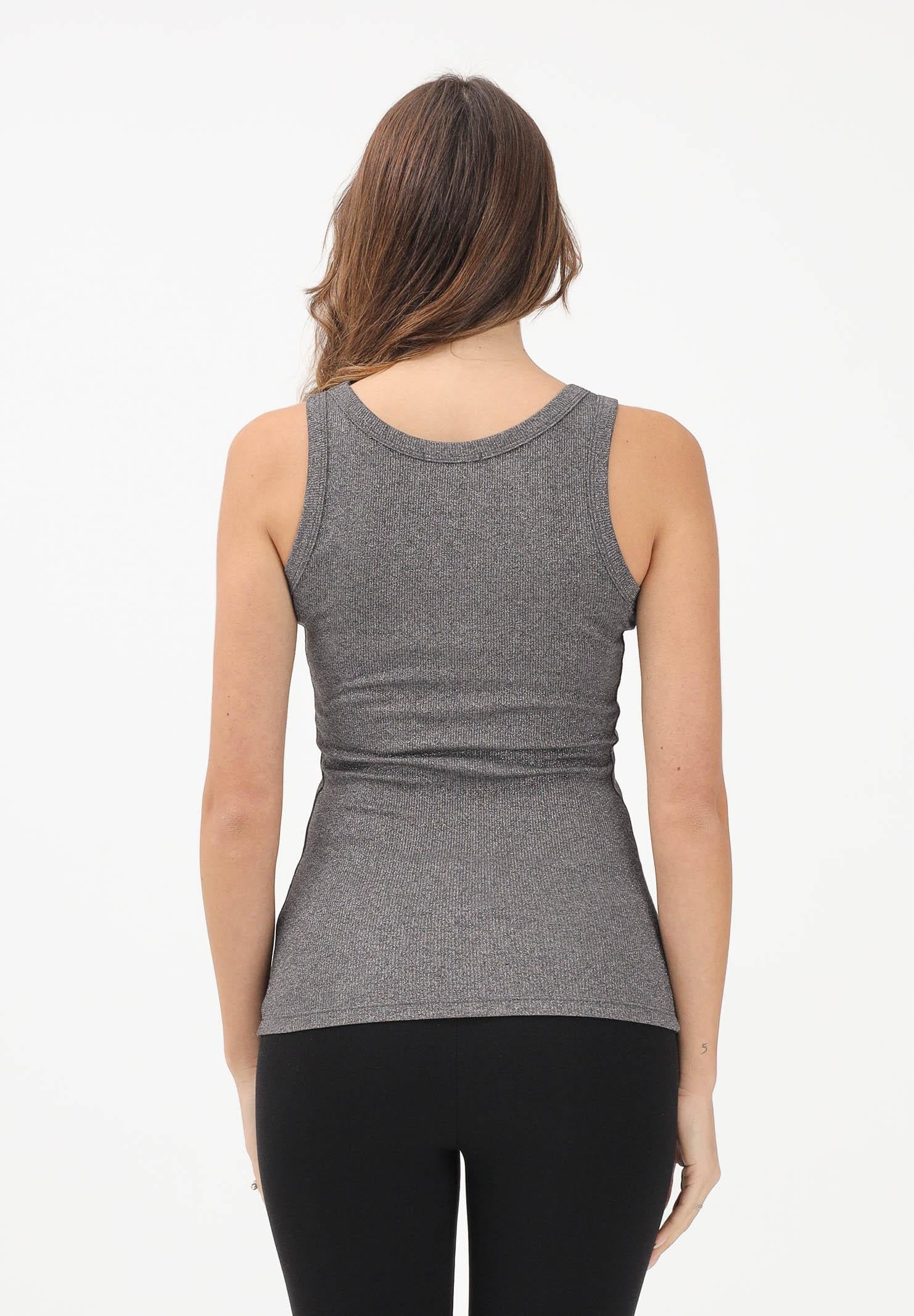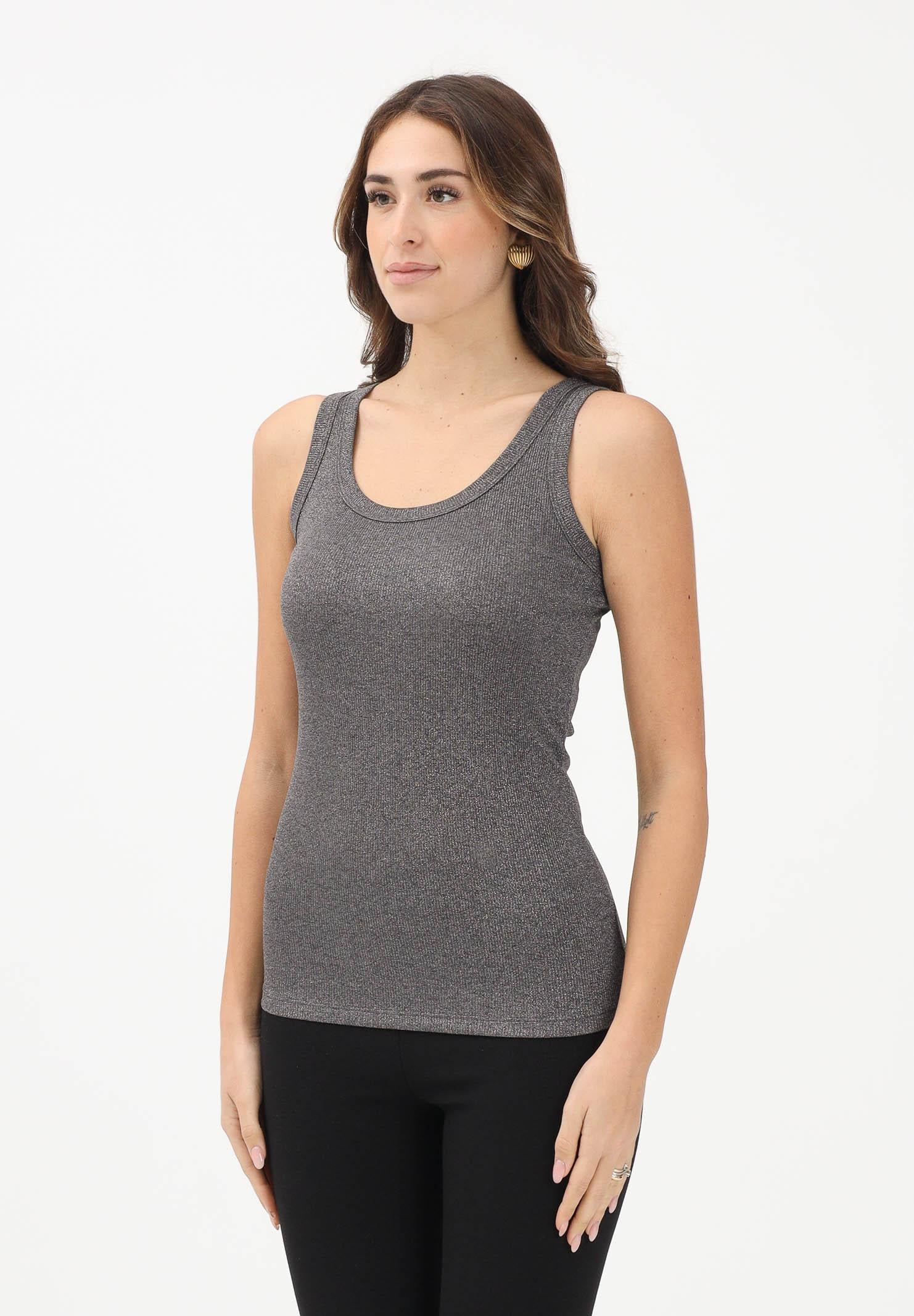 VICOLO Women's grey tank top made from a fabric woven with lamé yarn