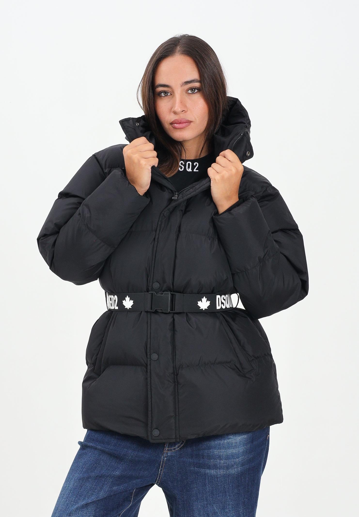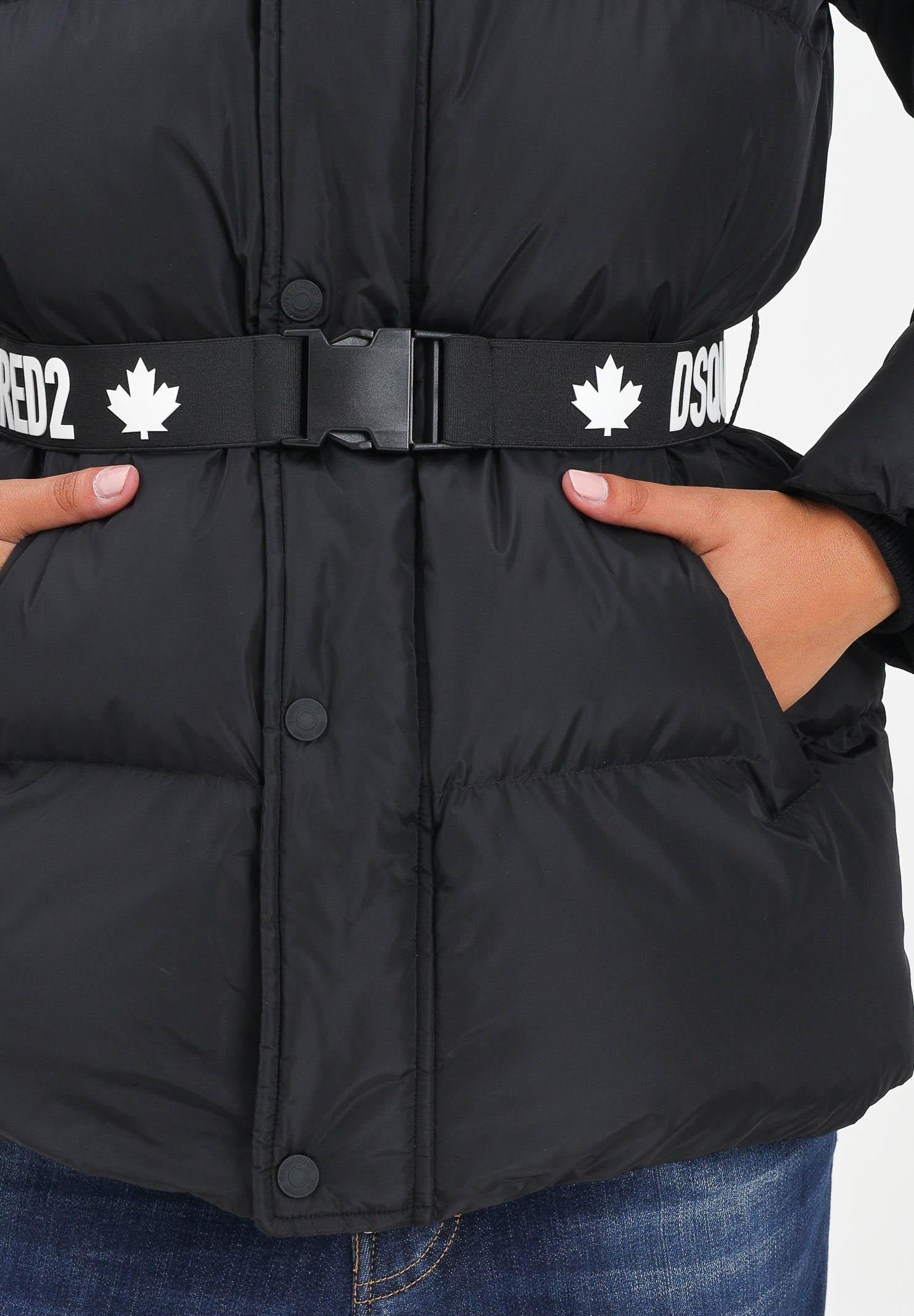DSQUARED2 Black down jacket for women and girls with logo belt