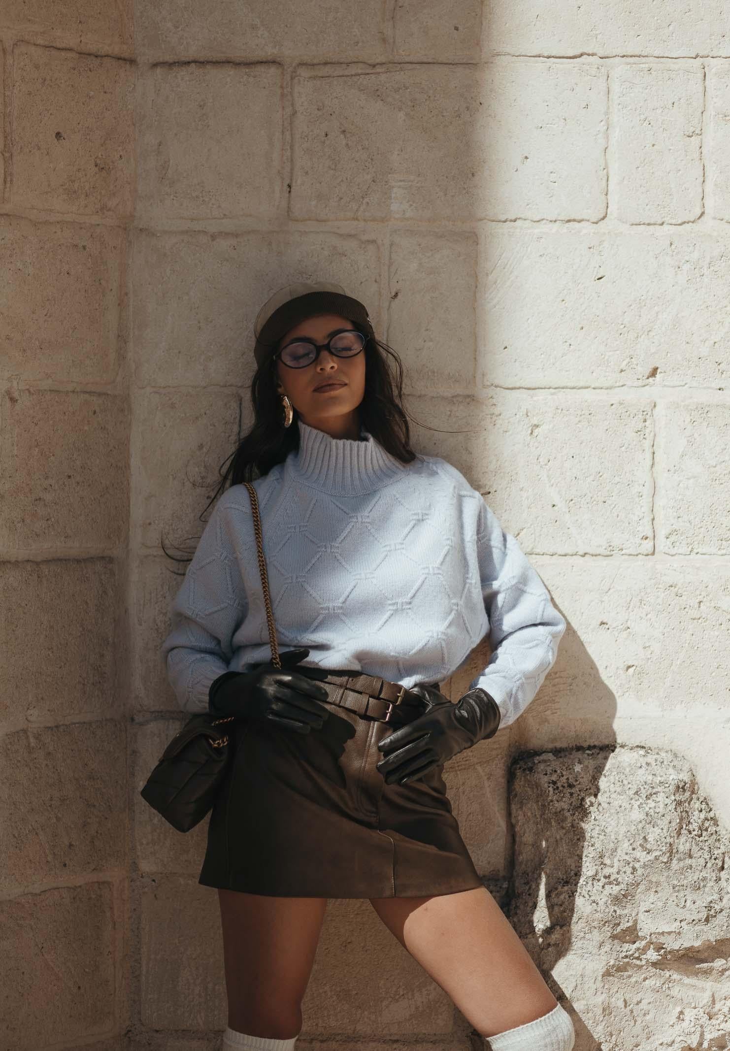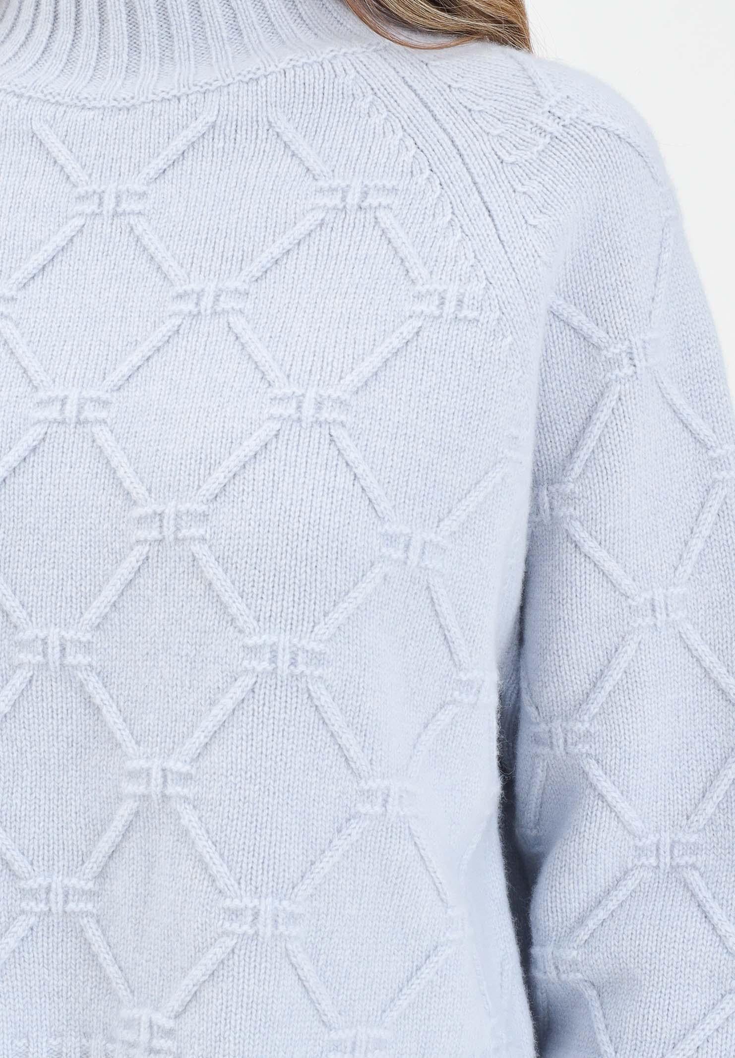 ELISABETTA FRANCHI Women's light blue turtleneck sweater with jacquard diamonds