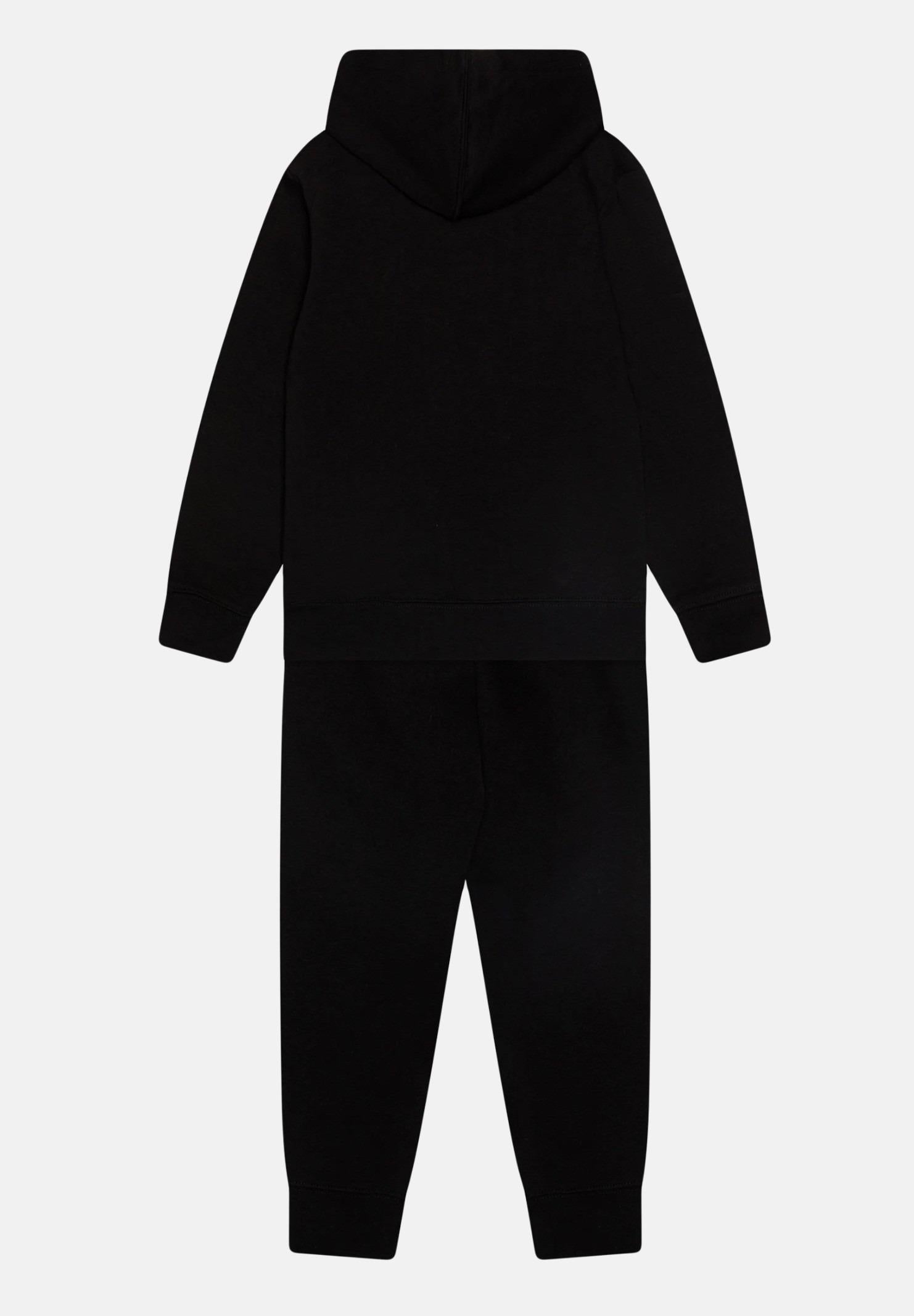 JORDAN Black baby tracksuit with contrasting logo, a detail that adds a touch of sporty and iconic style. Designed with the delicate skin of newborns in mind, it offers a comfortable and practical fit. Hooded sweatshirt for additional warmth and protection. We recommend washing and ironing at medium temperature. Autumn winter season.