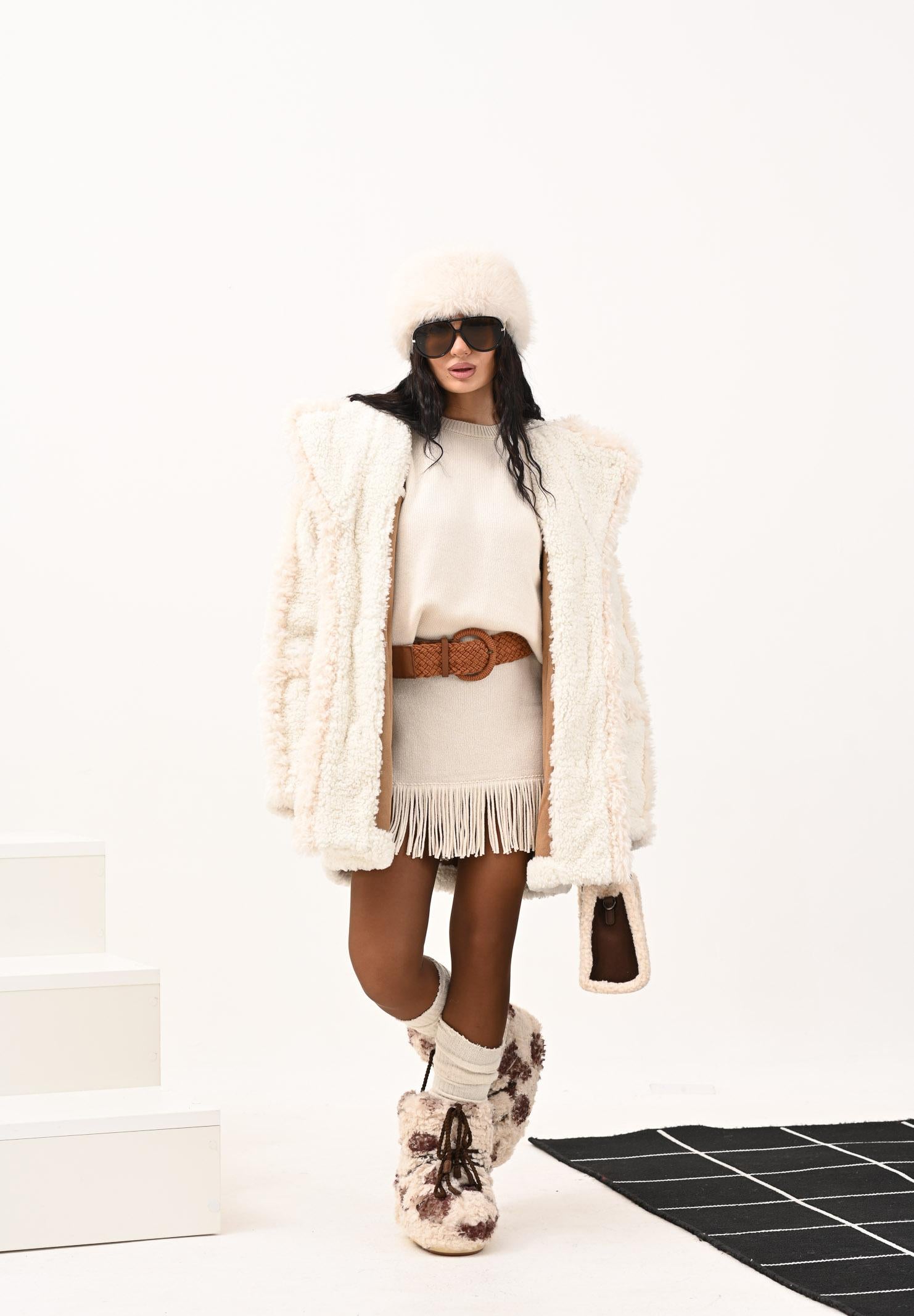 AKEP Gonna corta panna da donna con frange e spacco