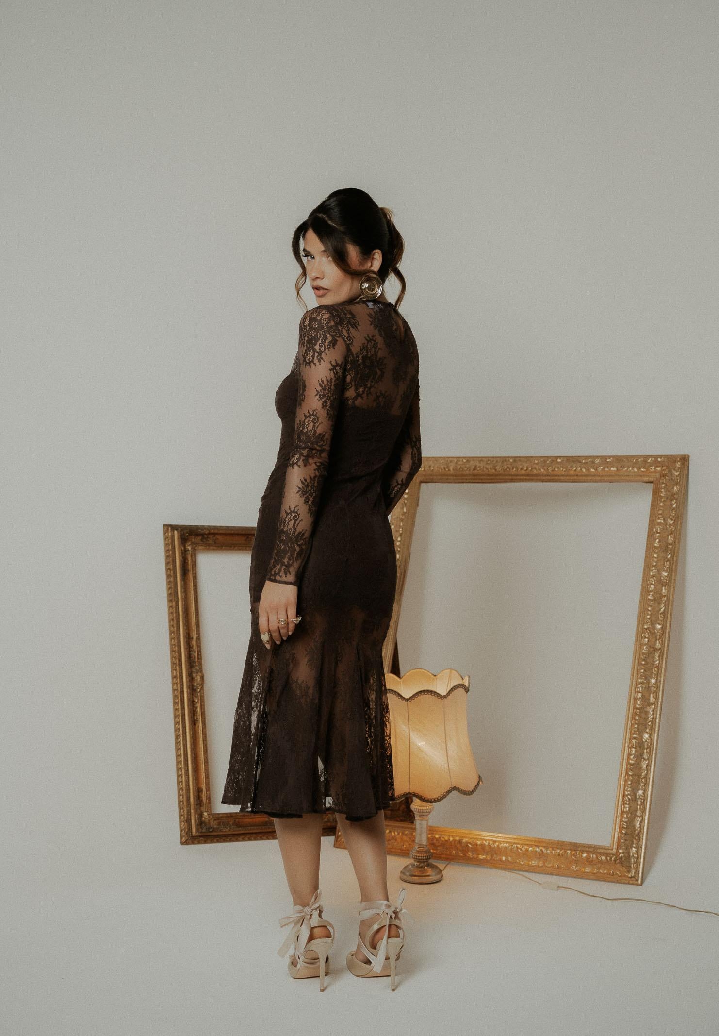 Abito midi elegante marrone donna regular fit autunno inverno PV2608GR