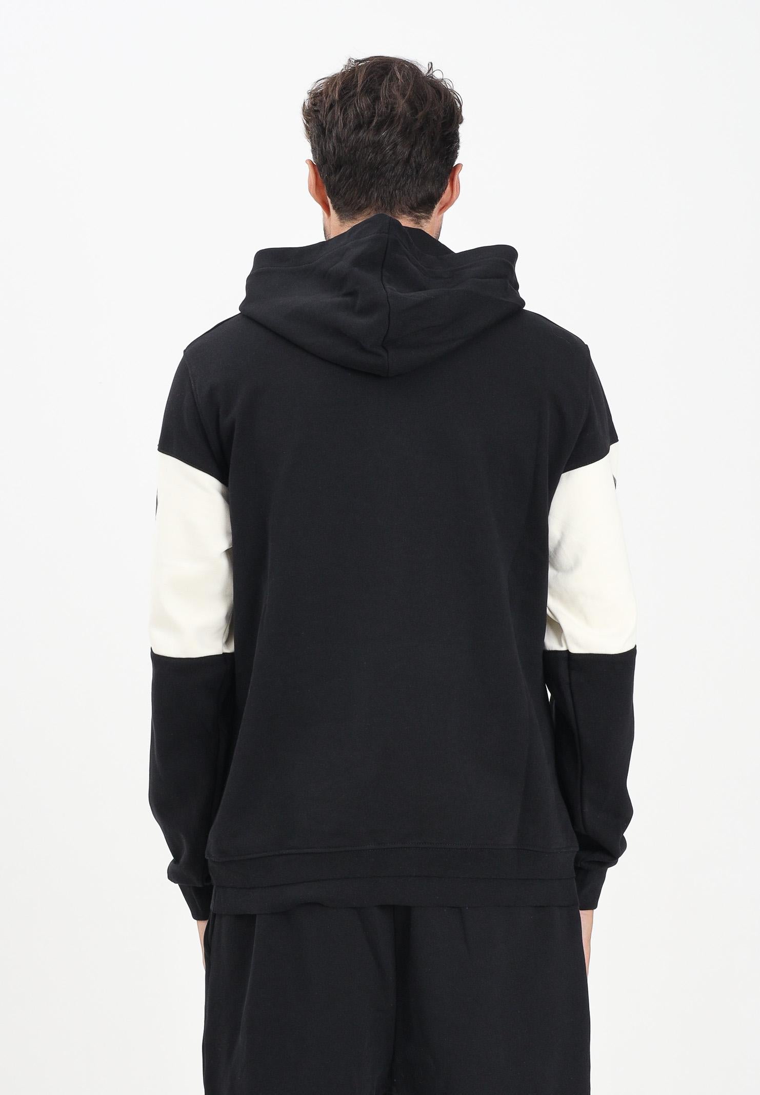 DISCLAIMER Felpa con cappuccio nera da uomo rifinita da inserto panna con logo