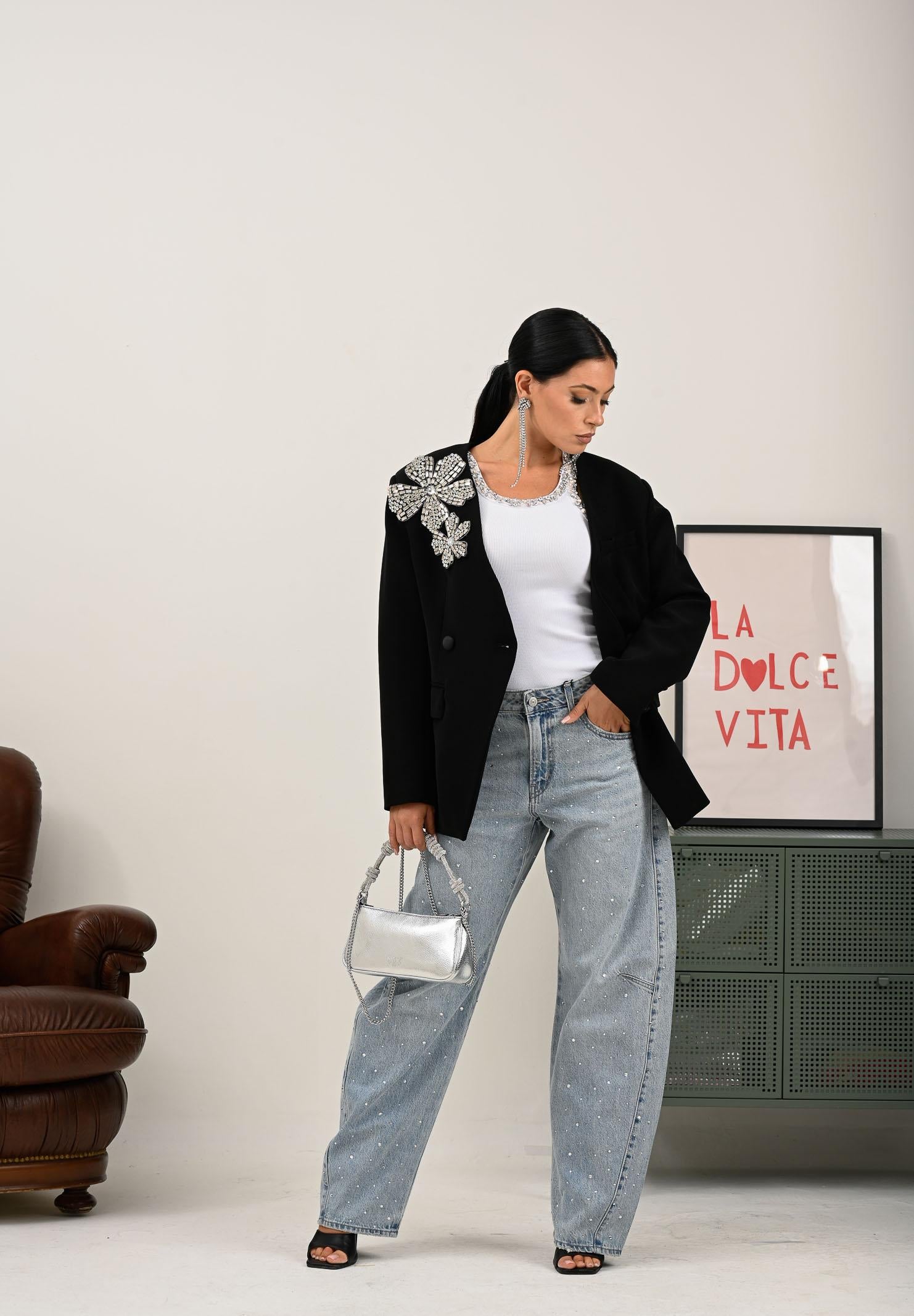 TPN Giacca doppiopetto Arlee nera da donna con applicazione fiore in strass