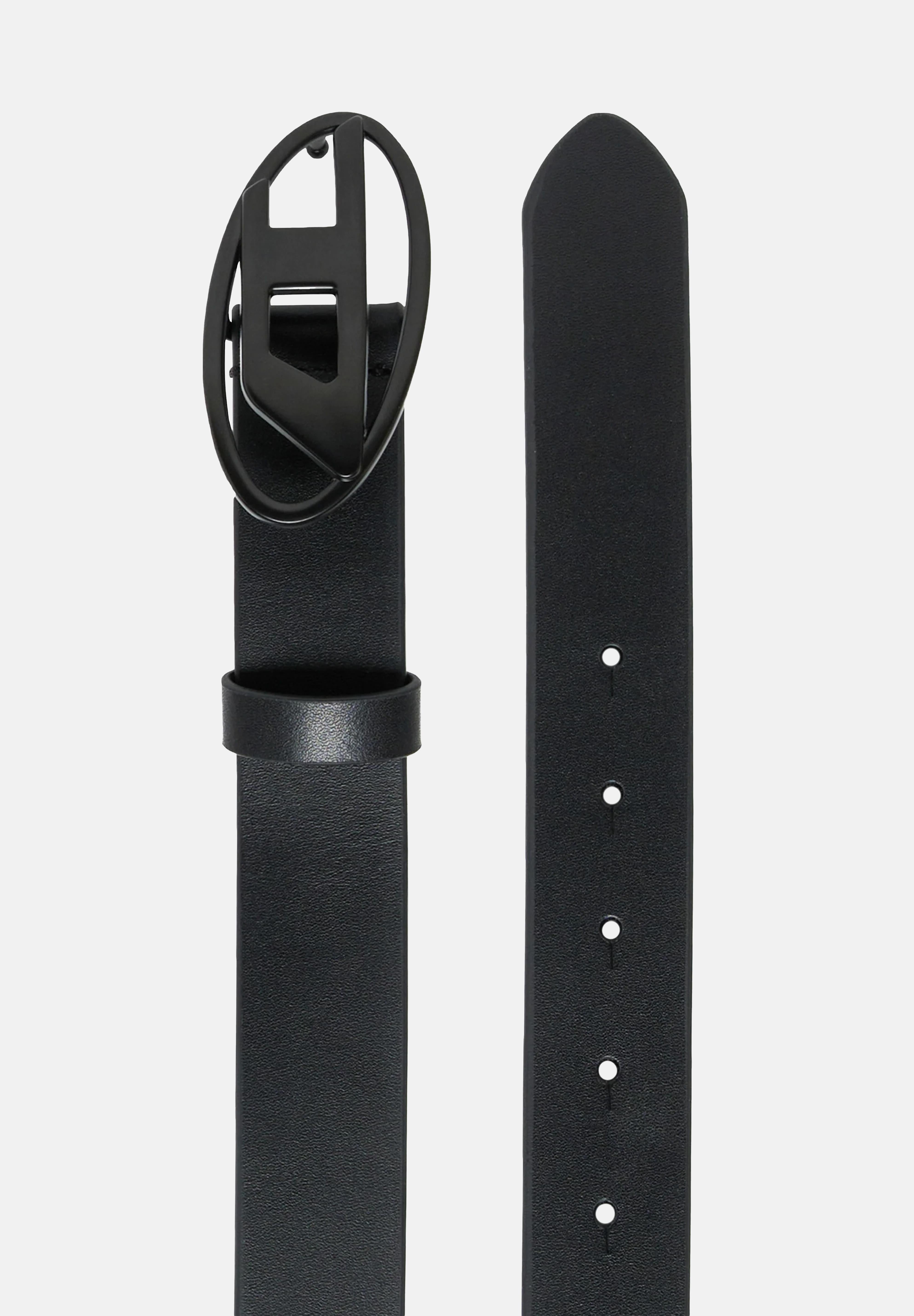 DIESEL Cintura nera per uomo e donna arricchita da fibbia con logo Oval
