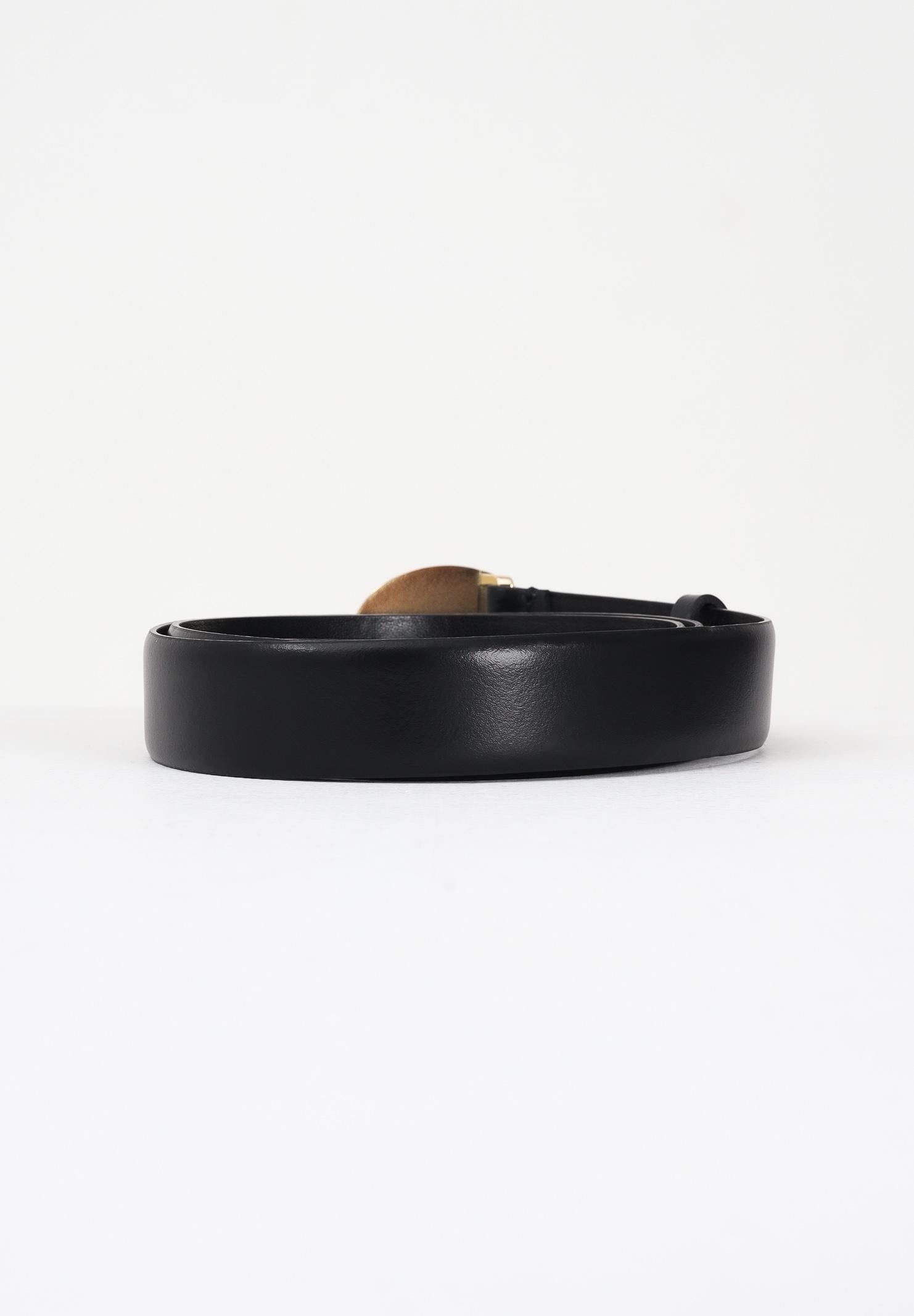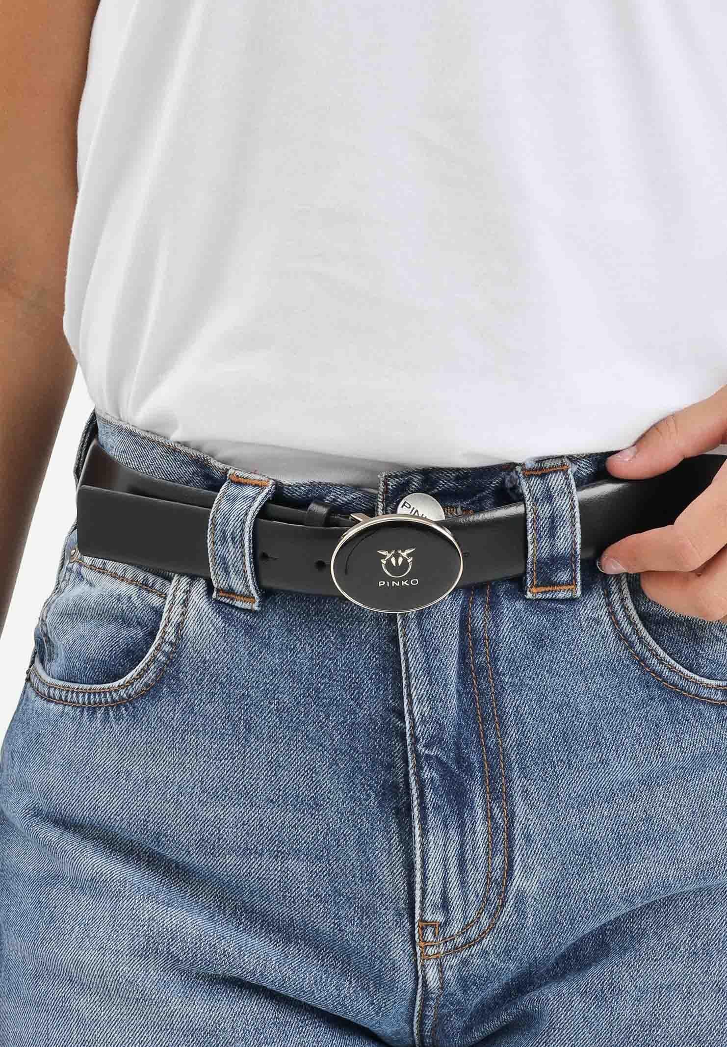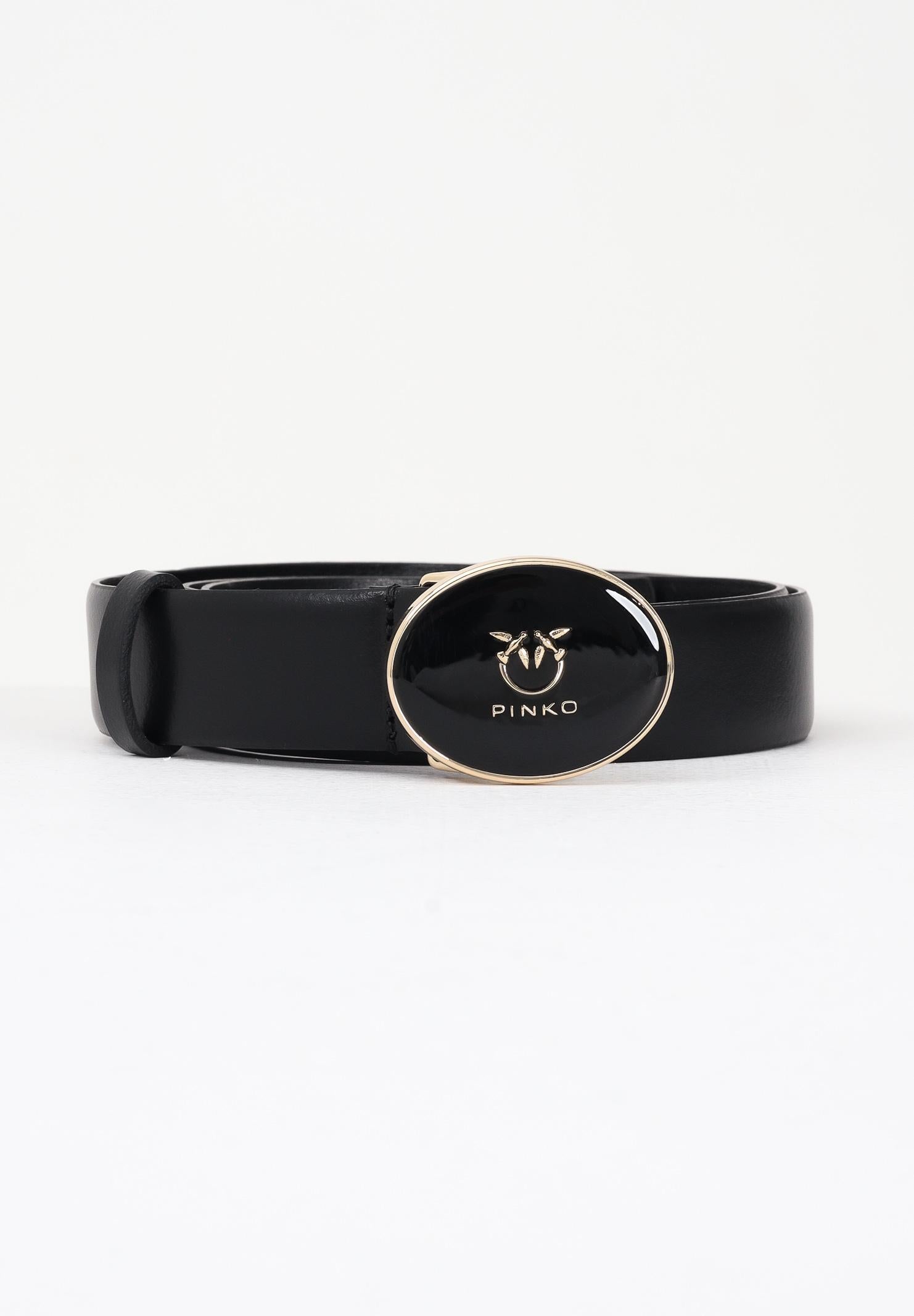 PINKO Cintura nera da donna caratterizzata da un design essenziale ed elegante. Il modello presenta una fibbia rotonda smaltata nera con profilo dorato e logo Pinko in evidenza, che aggiunge un tocco sofisticato e riconoscibile al look. Perfetta per valorizzare sia outfit casual che più ricercati, questa cintura è un accessorio versatile e intramontabile, capace di completare con stile pantaloni, gonne e abiti. Altezza: 3cm. Stagione autunno inverno.