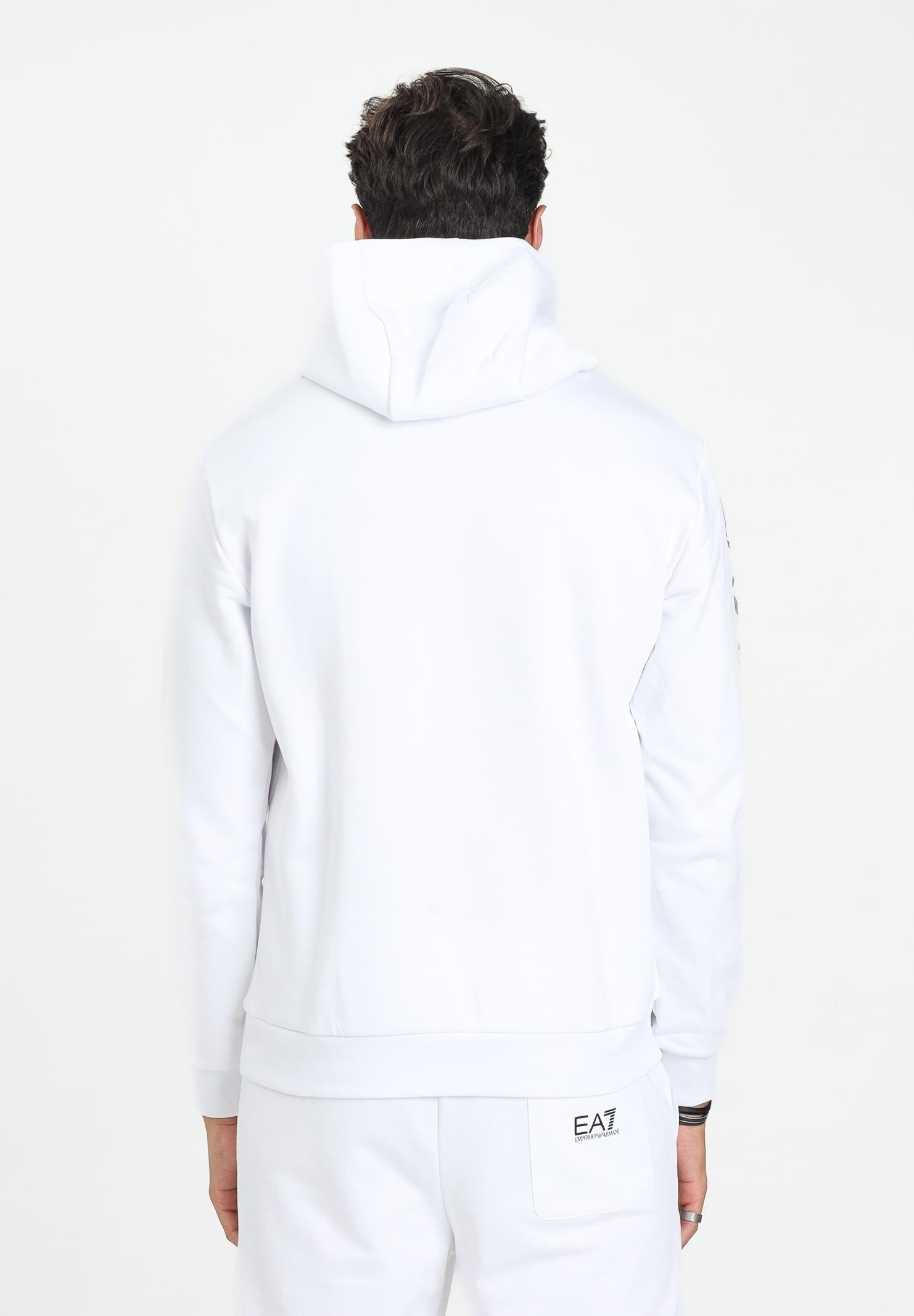 EA7 Felpa con cappuccio bianca da uomo rifinita da stampa logo